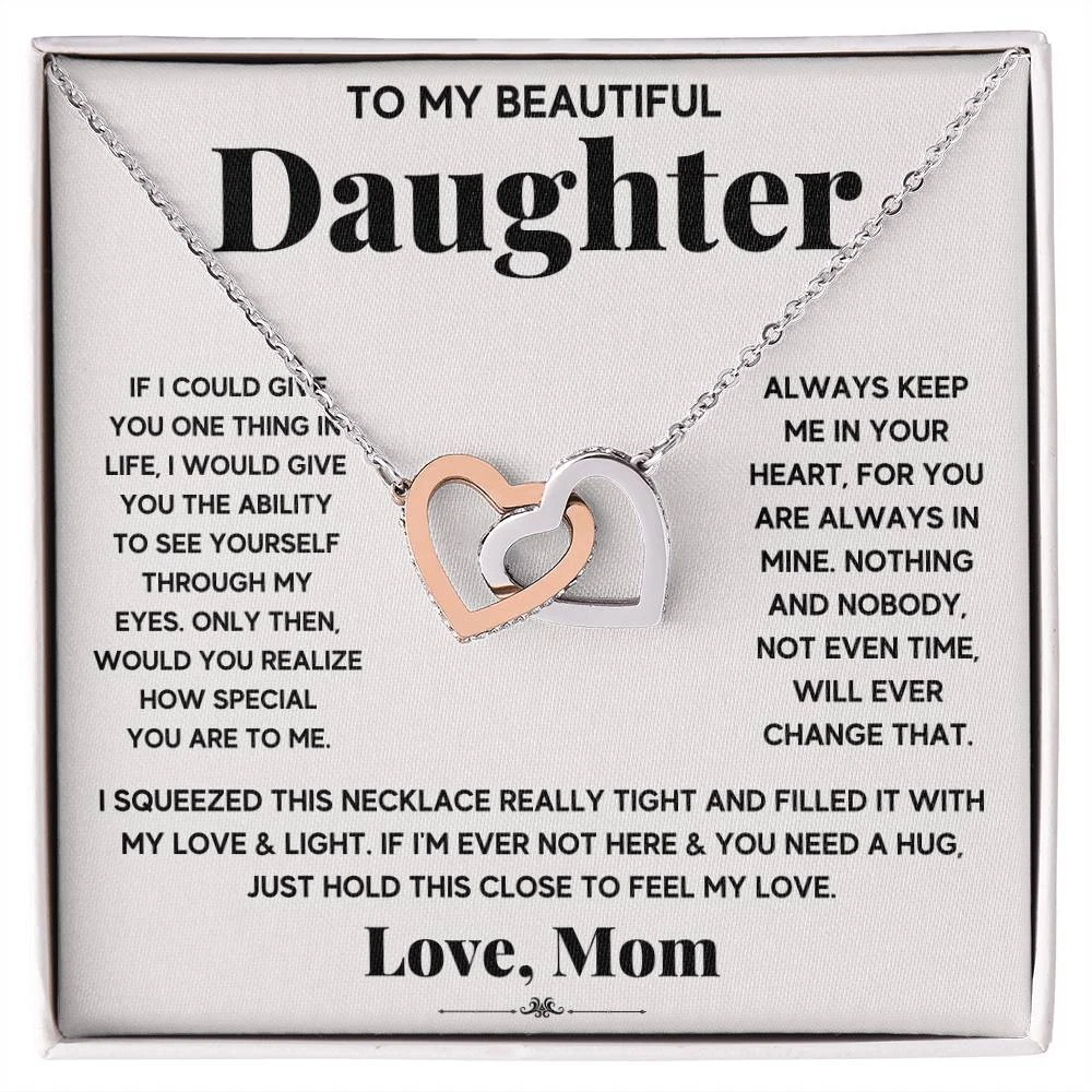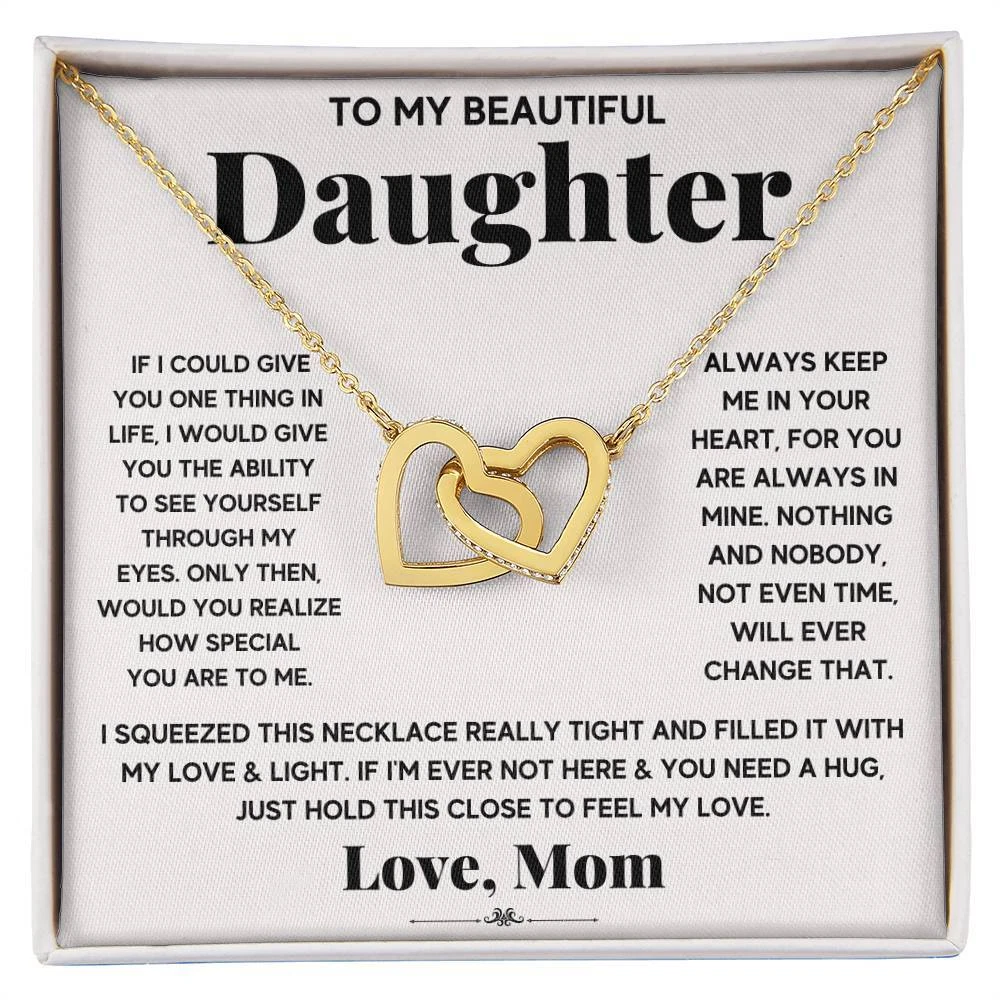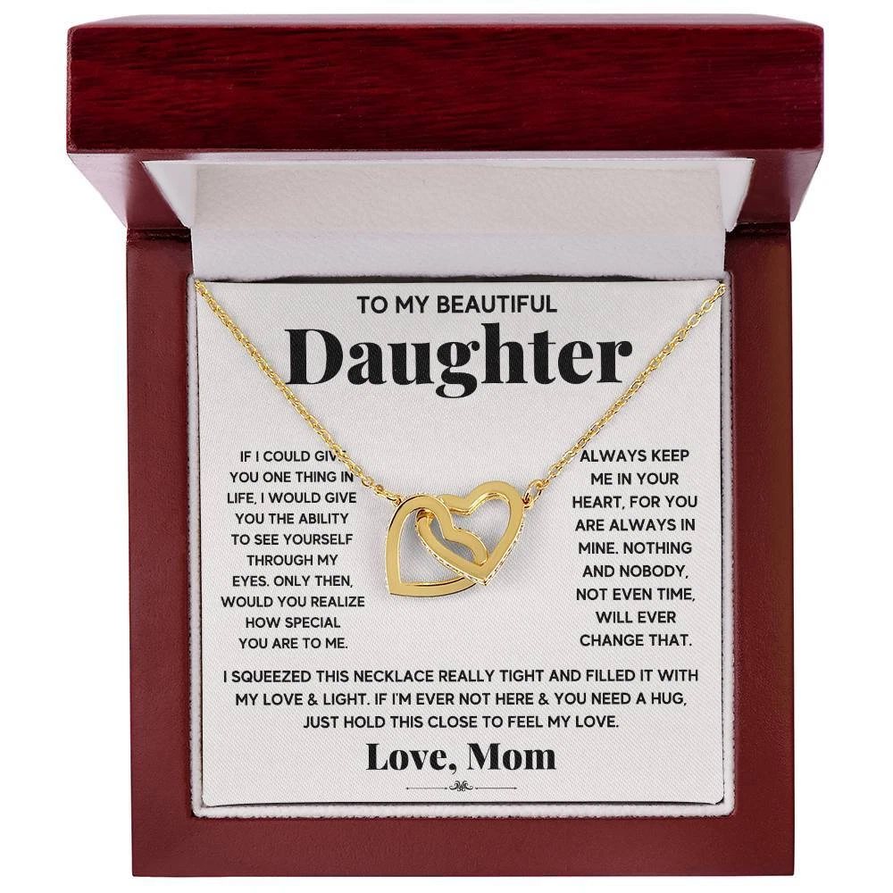 Give her the gift that symbolizes your never-ending love. Featuring two lovely hearts embellished with cubic zirconia crystals, this Interlocking Hearts necklace is the perfect accessory for everyday wear. Whether it's a memorable anniversary or a special birthday, make sure to dazzle your special someone by gifting them this stunning necklace. Two heart pendants embellished with CZ crystals High quality polished surgical steel and rose gold finish or 18k yellow gold finish Pendant dimensions: 0.6" (1.5cm) height / 1.1" (2.8cm) width Adjustable length: 18" - 22" (45.72 cm - 55.88 cm) Lobster clasp Your piece is lovingly packaged in a complimentary soft touch box for easy gifting. Elevate your presentation by upgrading to the mahogany style luxury box, which features a brilliant LED spotlight.