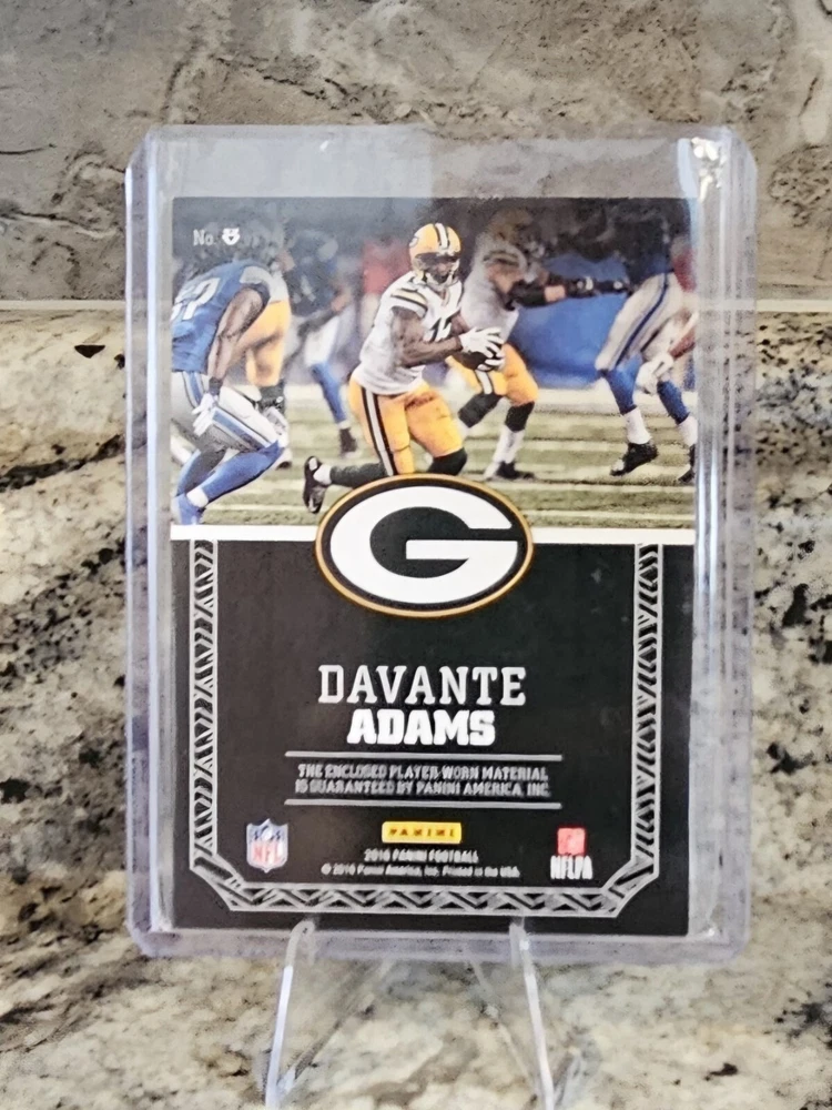 Elevate your collection with the Davante Adams Gridiron Warriors card, featuring a rare 13/25 patch from the 2016 season. This collectible showcases Adams' dynamic presence with the Green Bay Packers and is a must-have for any serious football card enthusiast or fan of the sport. The card, produced by Panini, is part of a highly sought-after series and is distinguished by its serial numbering, ensuring its uniqueness among NFL memorabilia. With the card's intricate design and homage to one of the league's promising players, it represents a remarkable piece of sports history.
