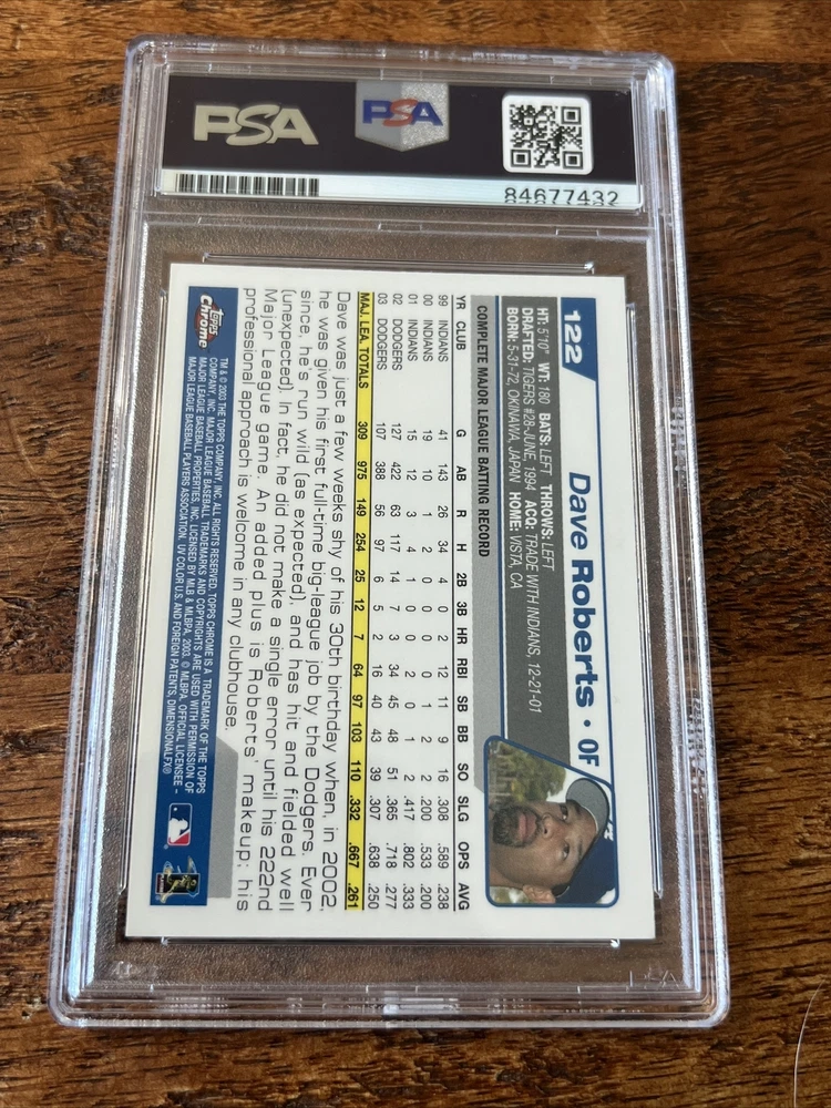 For sale is a Topps Chrome card signed by Dave Roberts. The signature has been examined and certified by PSA/DNA . It has been slabbed . Authentic Autograph #84677432. Comes in a full encapsulation case done by PSA DNA.