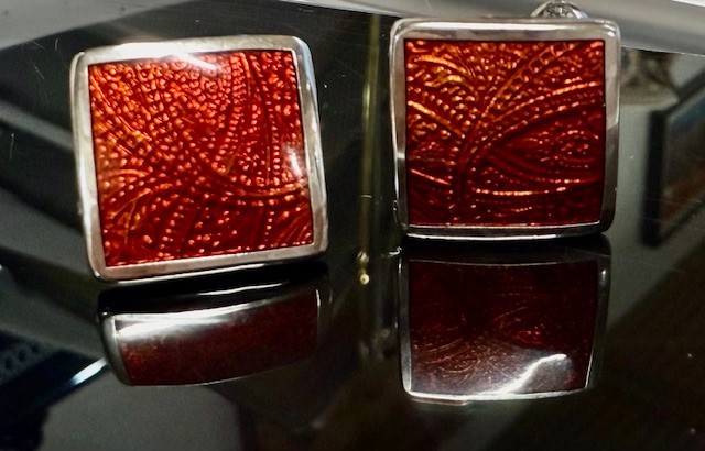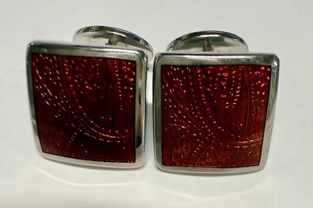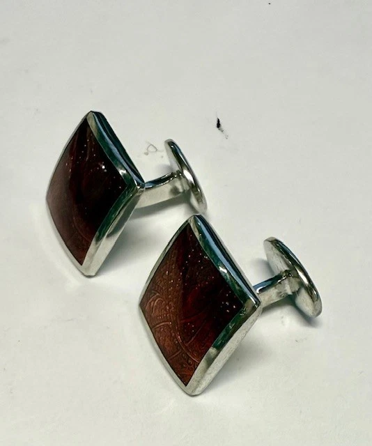 David Donahue Cufflinks 925 Sterling Silver & Rust Color Enamel Paisley Design