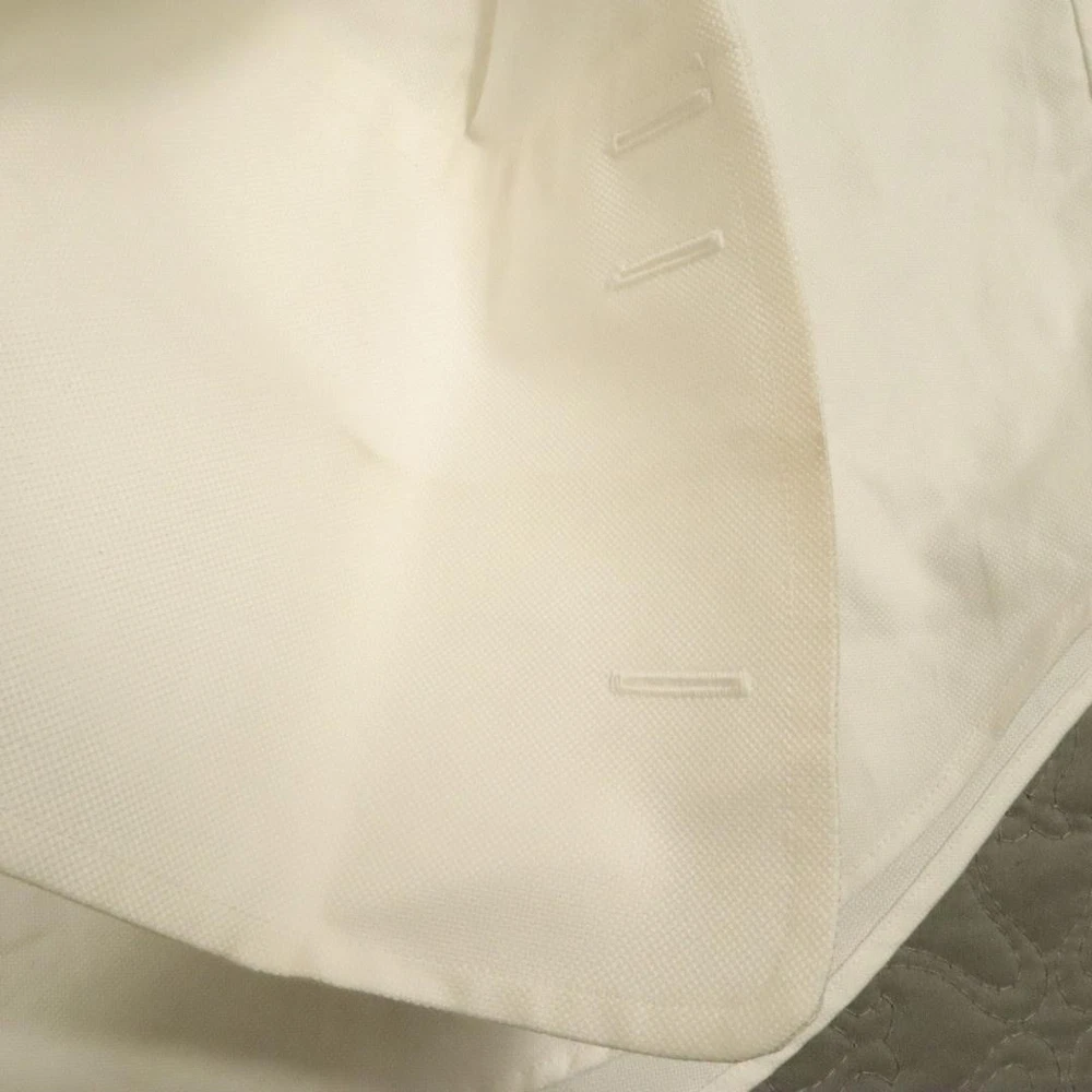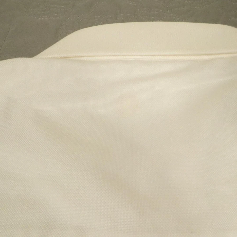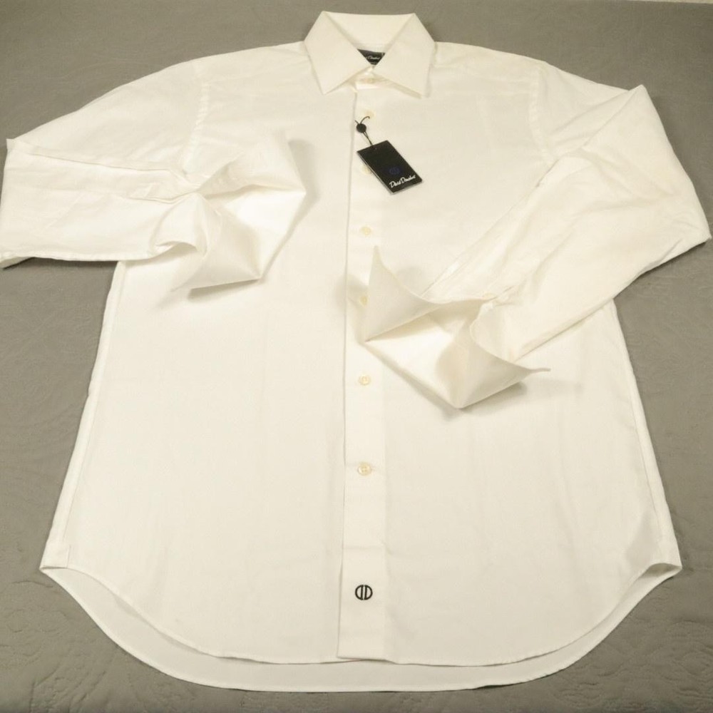 Brand: David Donahue Style: Mens long sleeve dress shirt with button front closure, point collar, and barrel cuffs. Color: Solid white. Size on tag: Mens 15.5 neck, 34/35 sleeve. Material: 100% cotton. Some dirt around shoulders and collar, also some at crease of end of sleeve. PLease see all pictures. May wash out.