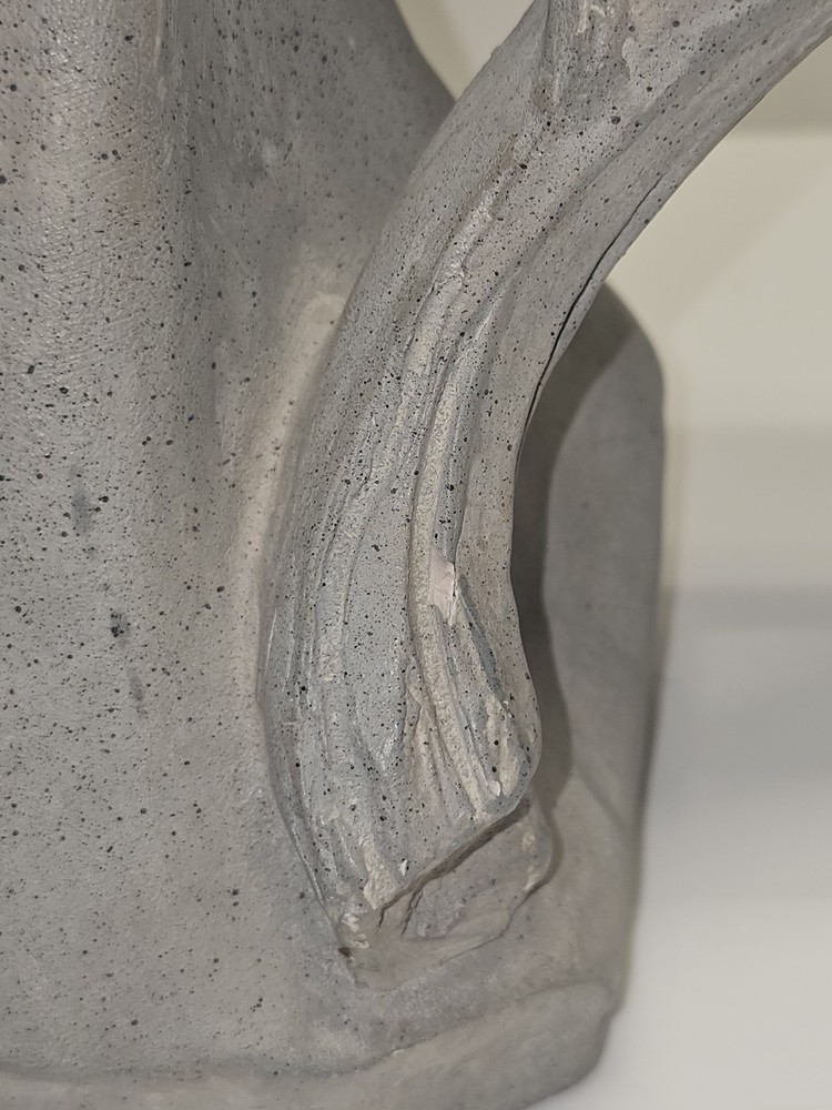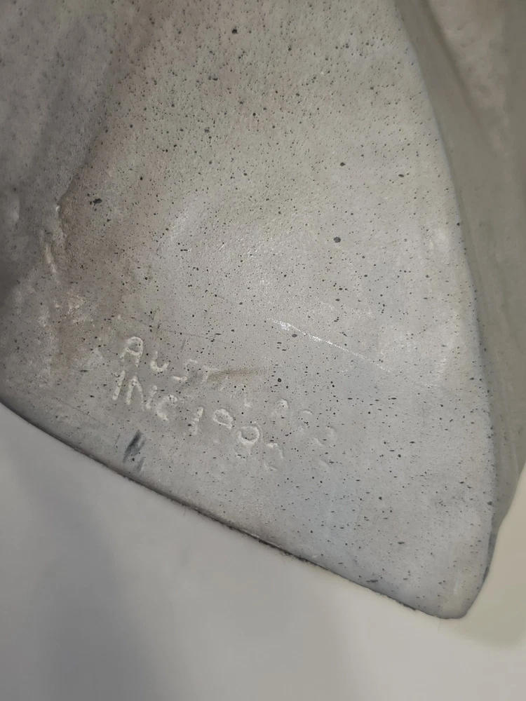 The David Fisher Austin Productions Vintage 1980 'Faces of Love' Stamped Sculpture is a unique and handmade piece of contemporary art created by artist David Fisher. This medium-sized statue, measuring 11 inches in length and 14 inches in height, is crafted from plaster and depicts the theme of love in an abstract and modernist style. Signed by the artist, this limited edition sculpture was produced in the 1980s in North Carolina, USA, making it a special addition to any art collection or as a statement piece for any room.