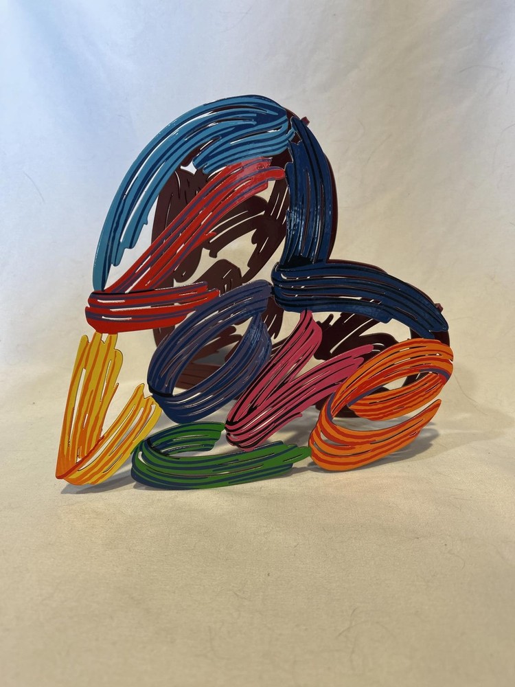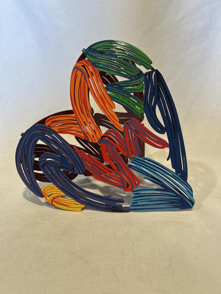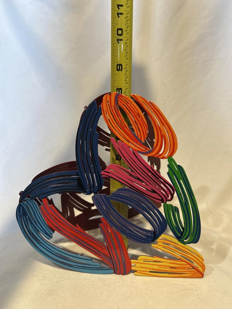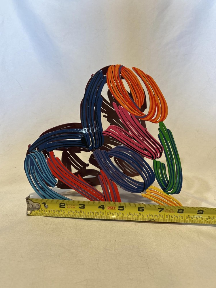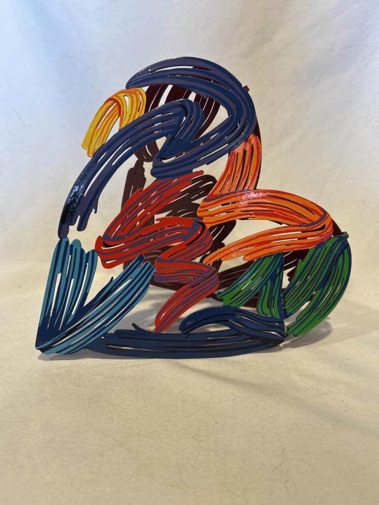 Add a splash of color to your space with this unique abstract love heart sculpture. Crafted from vibrant materials, the design beautifully intertwines shades of blue, red, orange, green, and pink to create an eye-catching piece that represents love and creativity. Perfect for home decor or as a thoughtful gift, this sculpture stands out as a beacon of joy and artistic expression. - Dimensions: Perfect for tabletop display - Crafted from durable materials - Ideal for enhancing any space with color - Makes a great gift for art lovers - Unique design complements modern or eclectic decor