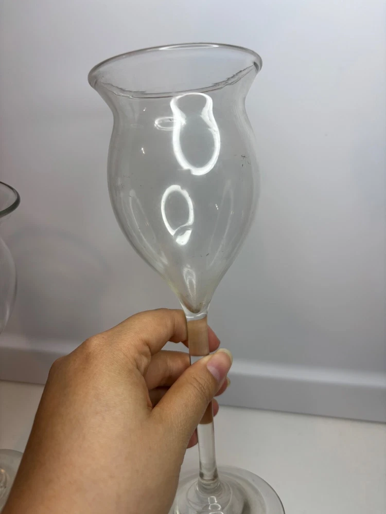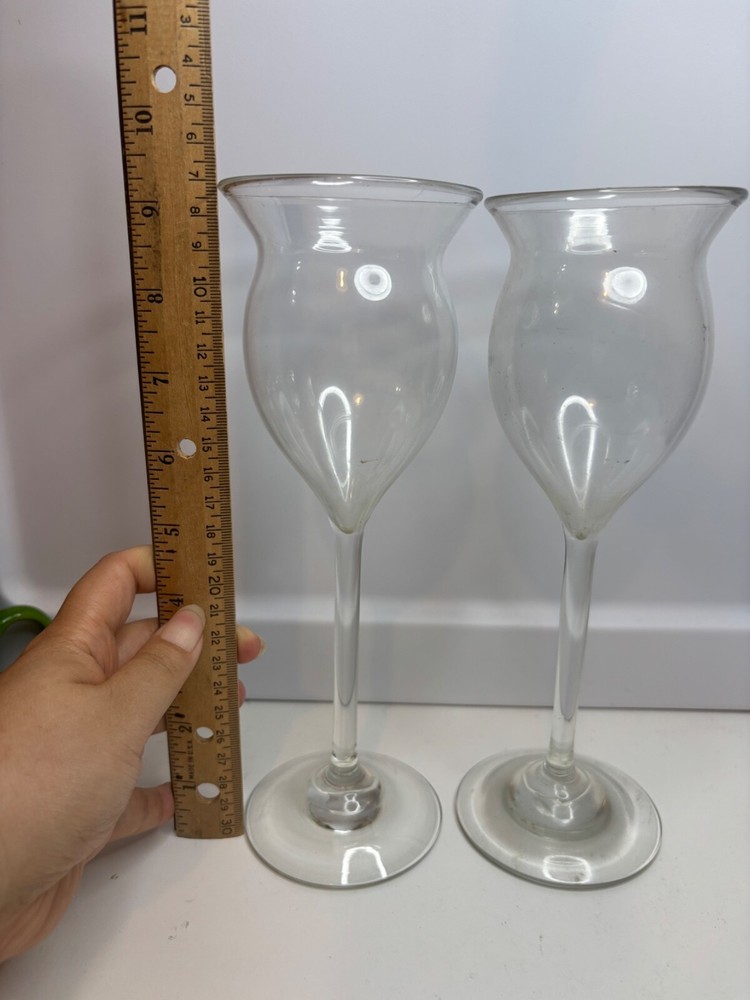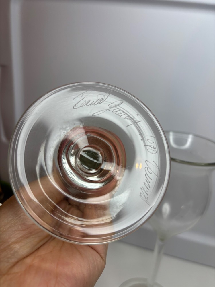 NO DAMAGED SIGNED BOTTOM LITTLE BIT DUSTY DAVID GRUENIG ART GLASS WINE GLASSES HAND BLOWN TULIP VERMONT 1980