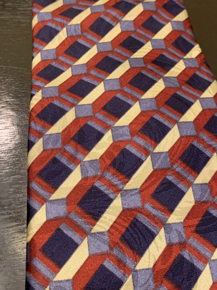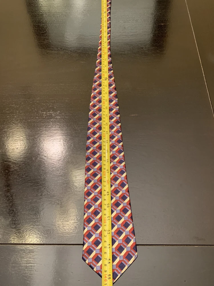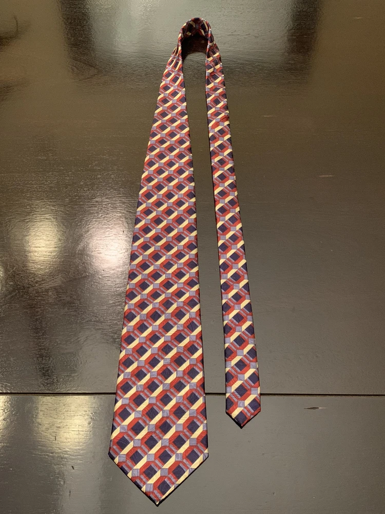 **Approx. 55.5” long and 3.75” wide** Elevate your formal attire with the David Taylor Necktie, a classic accessory that makes a bold statement. The geometric pattern in rich maroon, navy blue, and gold hues offers a versatile palette that complements a variety of shirts and suits. Made in the United States, this tie is crafted from durable polyester, ensuring both comfort and longevity. With a standard item length of 55.5 inches and a classic width, this tie is designed to fit most neck sizes and is tied for a neat, adjustable finish. Ideal for the modern gentleman's wardrobe, it's a piece that effortlessly combines style with practicality, making it a smart choice for any occasion that calls for a touch of elegance.
