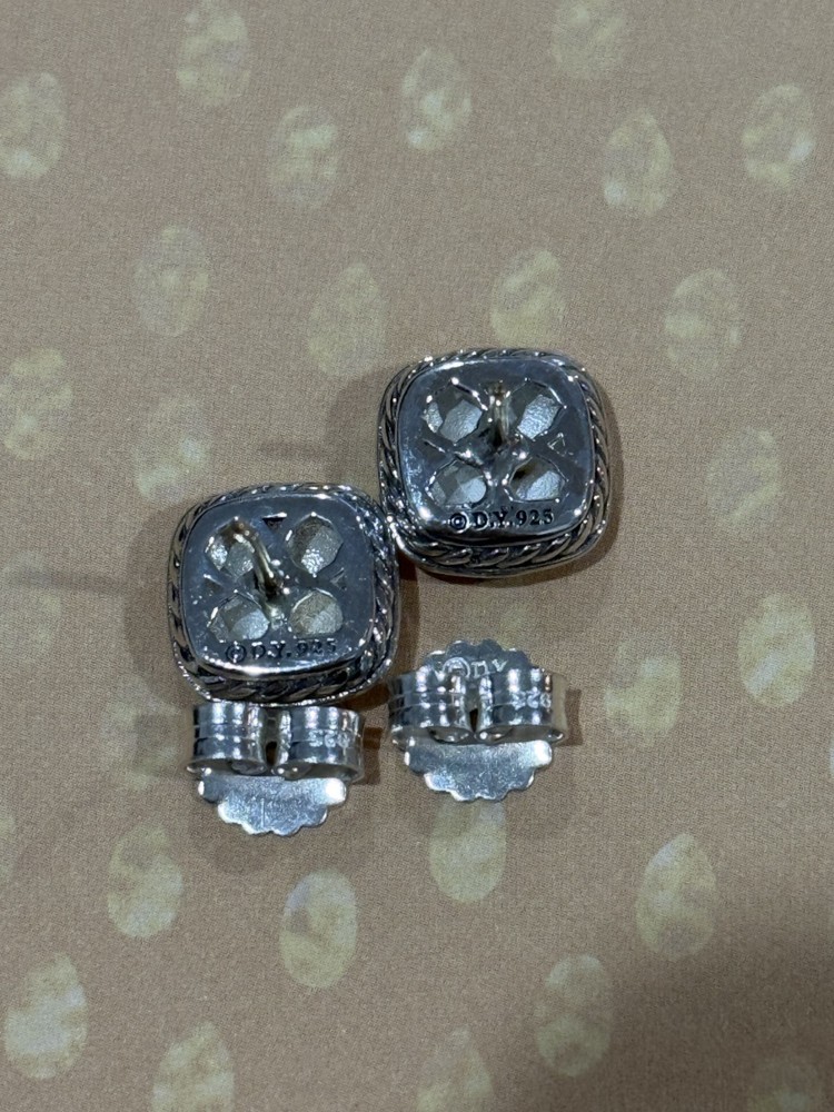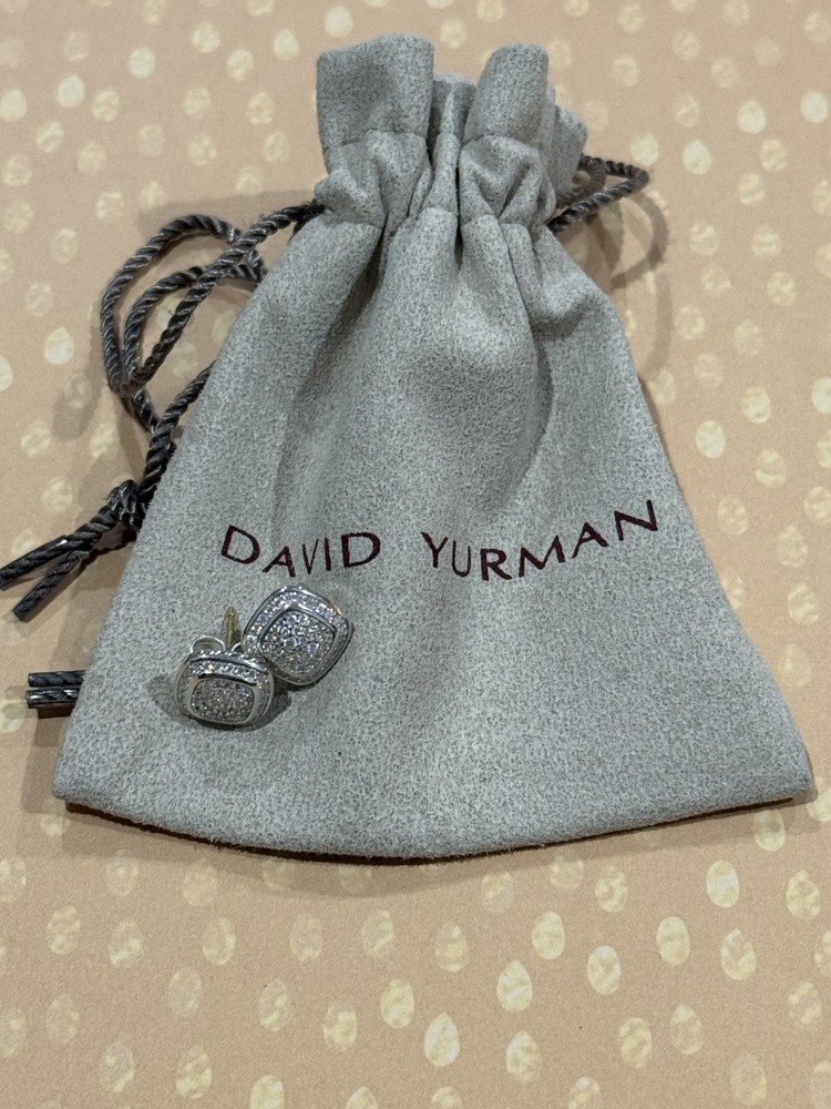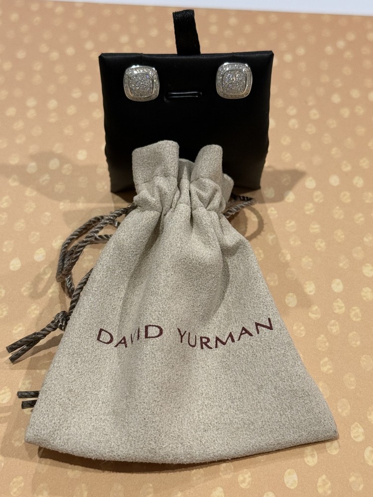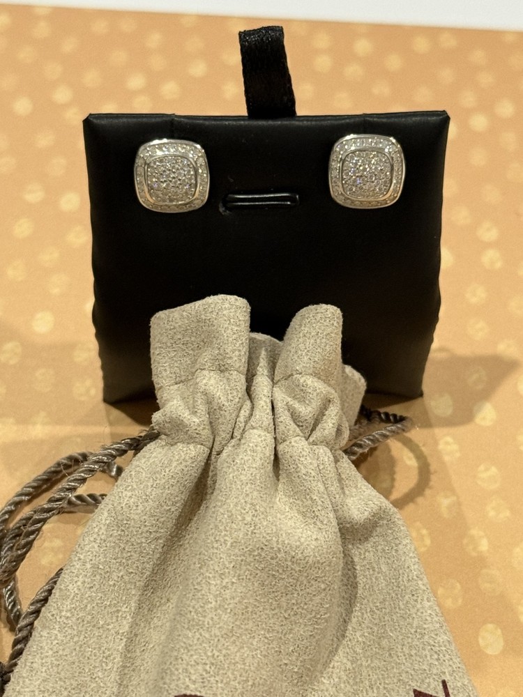 David Yurman Sterling Silver 925 stud pave earrings 7 mm