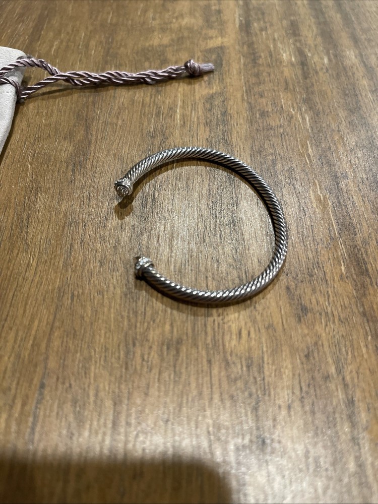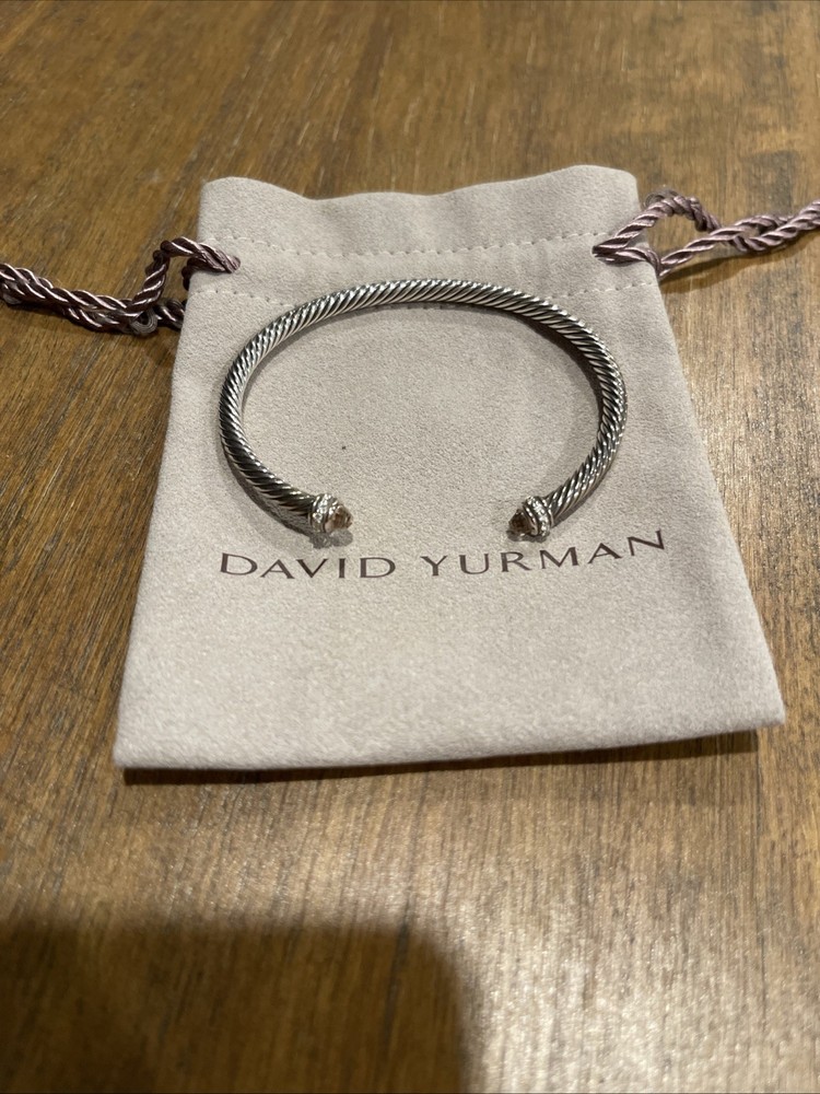The David Yurman Cable Bracelet in Sterling Silver with Morganite and Diamonds is a stunning piece of jewelry that exudes sophistication and elegance. The cuff style bracelet features a dome-shaped Morganite stone in a beautiful pink hue, surrounded by sparkling diamonds. Crafted from high-quality sterling silver, this bracelet is not only stylish but also luxurious and versatile, making it a perfect addition to any jewelry collection. The cable chain design adds a unique touch to the overall look of this exquisite piece.