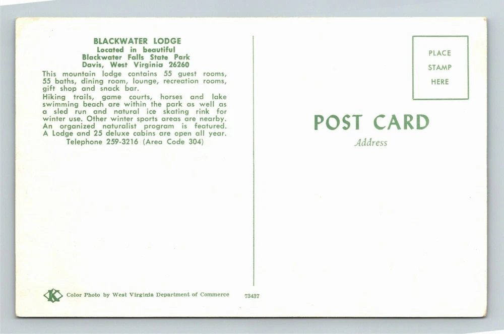 Davis WV-West Virginia Blackwater State Park Blackwater Lodge Vintage Postcard