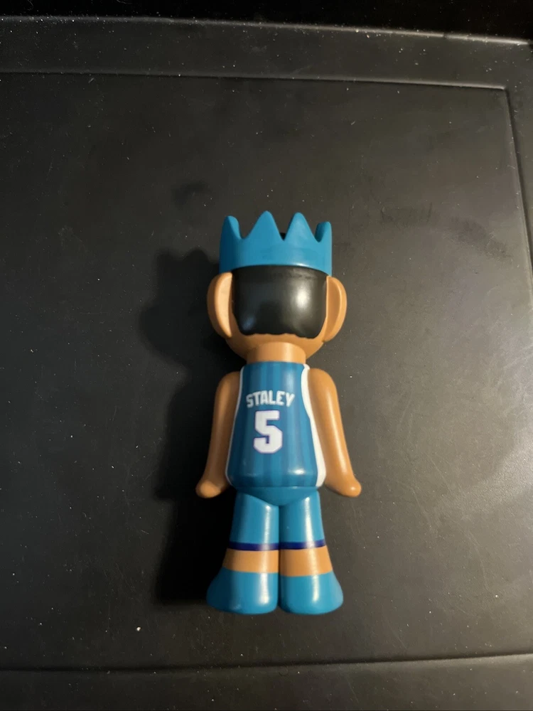 This rare and special edition Ghostwrite art toy features Dawn Staley, the legendary WNBA player and coach, and her team the Charlotte Sting. The mini figure stands at 4 inches tall and is perfect for fans of basketball and sports memorabilia. The black color and vintage design make it a unique addition to any collection, and it comes from the exclusive WNBA "Game Face (2024)" event/retailer. The Thomas Ghostwrite model is a limited edition item with only 800 produced, making it a rare find. The Ghostwrite series is known for its high-quality and detailed collectibles, and this piece is no exception. Whether you're a fan of Dawn Staley or just love sports, this art toy is a must-have for any collection.
