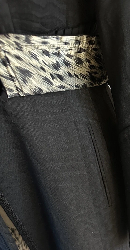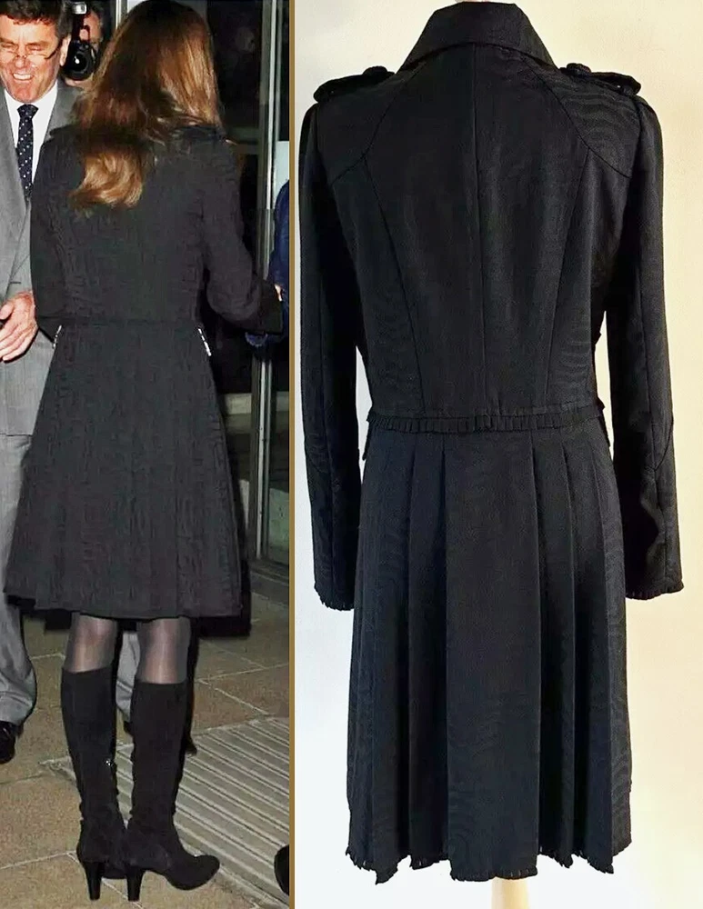 Day Birger et Mikkelsen black brocade embellished pleated coat dress. This is an absolutely gorgeous piece by Danish designer Day Birger et Mikkelsen which is really hard to find. It probably dates from around the early to mid 2000s. There are so many lovely details on it with passementerie braiding trims and buttons, A pleated skirt section. An asymmetric button fastening so coat can be worn buttoned up with a high collar or can be worn open with collars. A pretty waist band seam section with fine pleated ribbon edging finished with an internal concealed press popper fastening and a passementerie style button on the outer. A fine brocade finish patterned fabric believed to be wool mix . Fine pleated ribbon trims at cuffs, hems, waist band section. A swirling print to the satin lining with fine pleated ribbon trim inside.Two mock flap pockets with satin lining on reverse. Two slant side pockets concealed at sides of pleats. Size: To best fit a size small or a UK8 to 10/US4-6 approximately. Quite a fitted waist band seam design. Measurements can be provided. Excellent vintage condition. Day Birger et Mikkelsen brand labels in neckline and at side. No marks stains or damage apparent. It’s in really great shape for its age. It is absolutely beautiful. No returns. Courier shipping.International buyers please check whether customs entry charges will apply in your country at the point of delivery. Please see my other items.