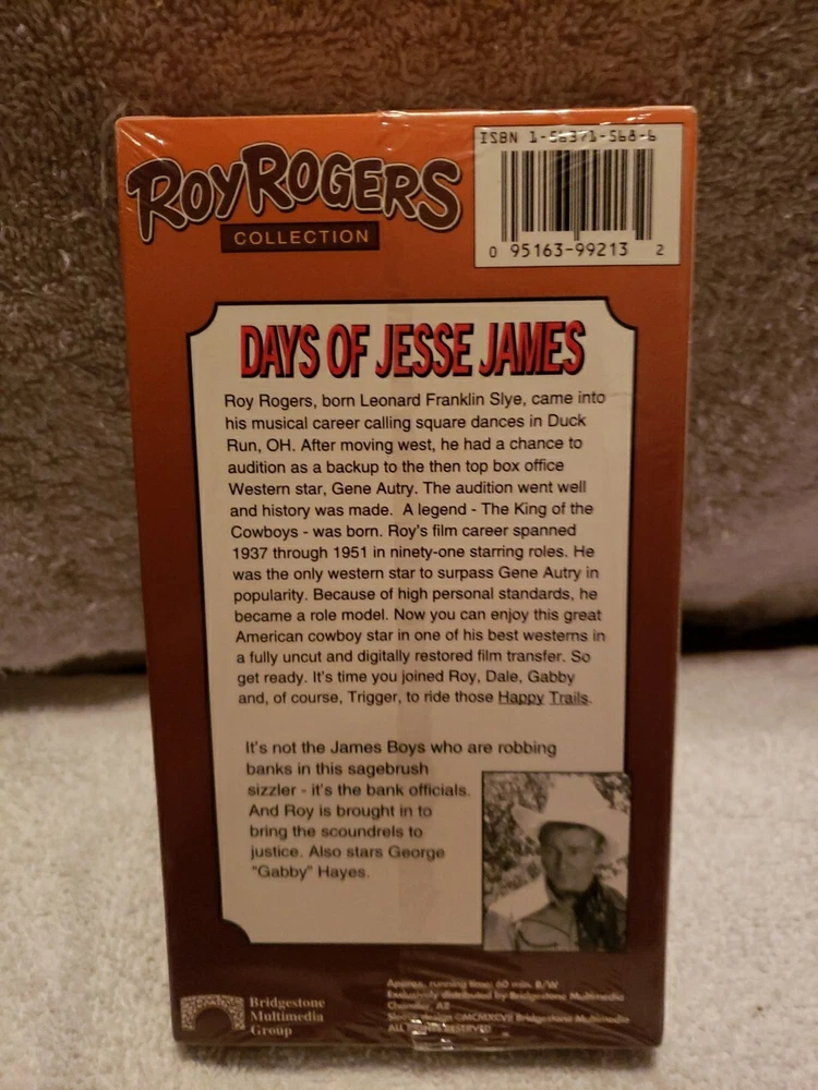 Enjoy the classic Western film, Days of Jesse James, on VHS. Directed by Joe Kane and Joseph Kane, this movie stars Roy Rogers as the lead character. The film is rated NR and has a signal standard of NTSC. This VHS tape is perfect for collectors of Western movies and fans of Roy Rogers. The genre of the film is Westerns, making it a great addition to any collection. Get ready to be transported to the Wild West with this classic movie.