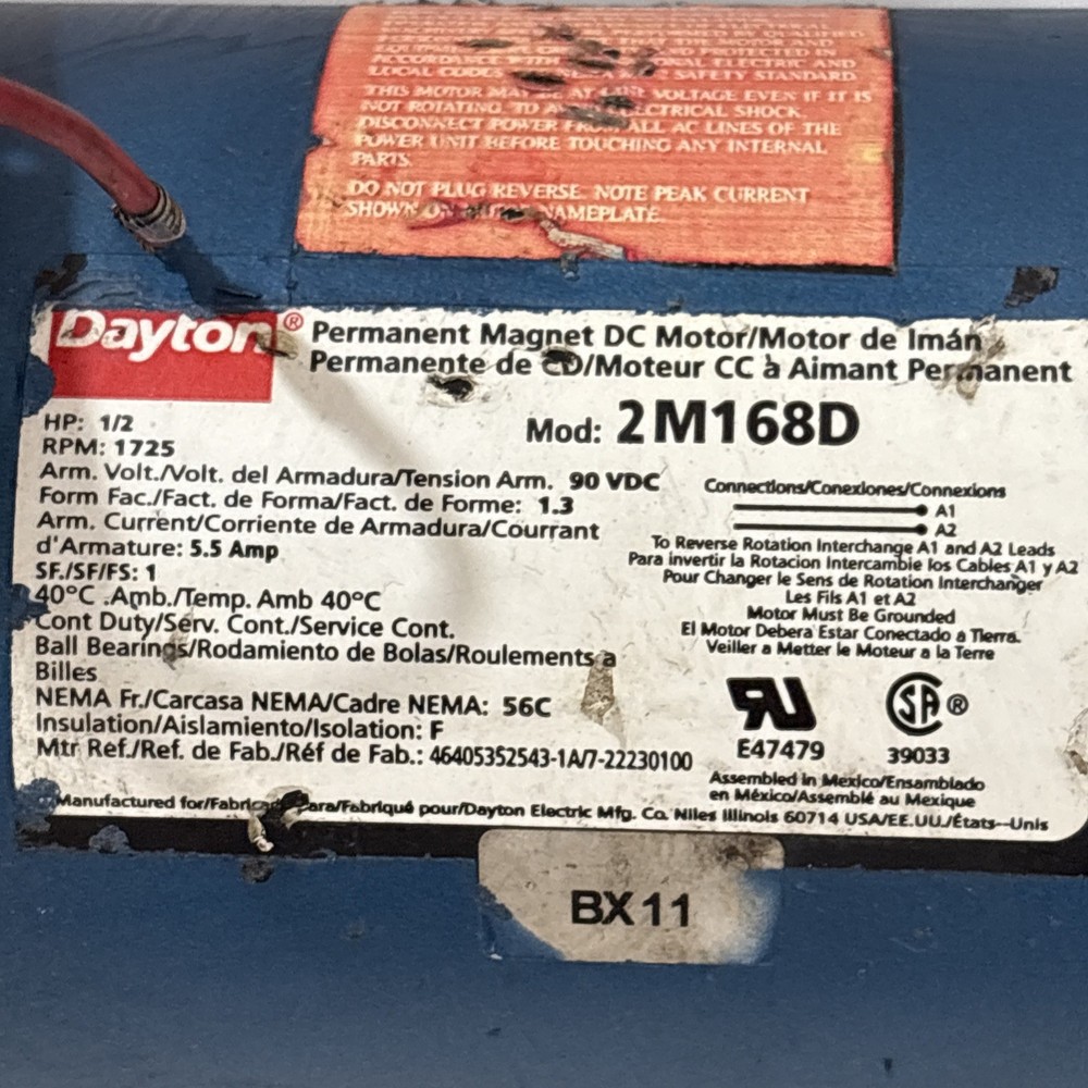 Dayton 2M168D Permanent Magnet DC Motor 1/2 HP 1725 RPM 18813 F2-Z4