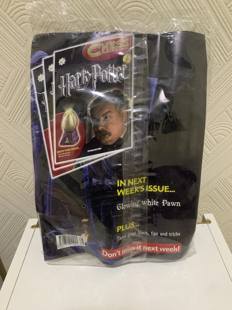 Issue 66: The Fiery-Eyed Black Bishop What a special listing and opportunity this is for someone. I have the Harry Potter Chess Set and Magazines by DeAgostini, which was a weekly collectors edition around 2007. Partwork published weekly by DeAgostini, originally in 48 parts, then extended with advanced chess set to 81. Each issue came with a magazine and parts for the chess set or chess board You have the exciting opportunity to handpick your preferred issue from the series, allowing you to tailor your collection according to your interests and needs. Whether you're seeking a specific piece to complete your set or simply eager to explore the rich content of the Harry Potter Chess Manual, this listing offers flexibility and choice like never before. With each issue, you'll uncover a new facet of the wizarding world, from iconic characters and magical creatures to pivotal moments in the Harry Potter saga. From the courageous knights to the cunning bishops, each chess piece is meticulously crafted to capture the essence of the beloved series, making your chess set a true collector's item. All issues are still sealed. Magazines have creases and folds from storage but still sealed. Some magazines are a little bent due to weight of the boxed figurine in the post and are in the same condition as when they were originally delivered by the Royal Mail. For combined postage and deals please feel free to message me! Happy Bidding :)