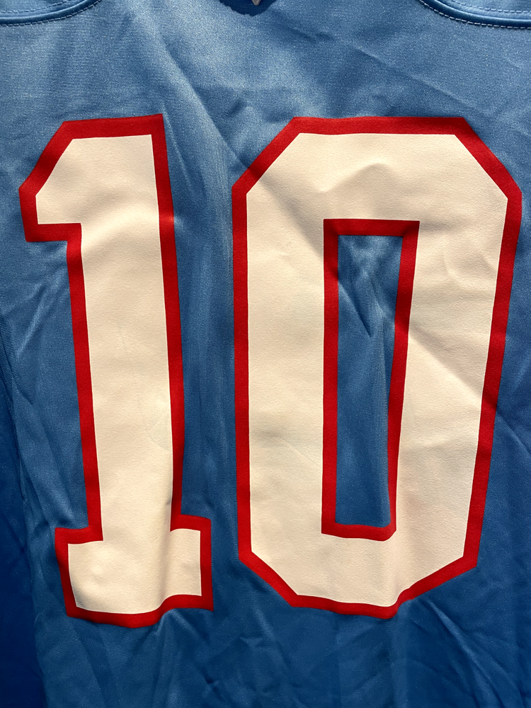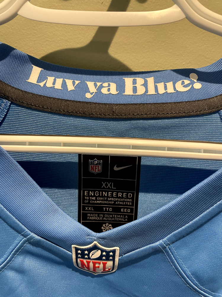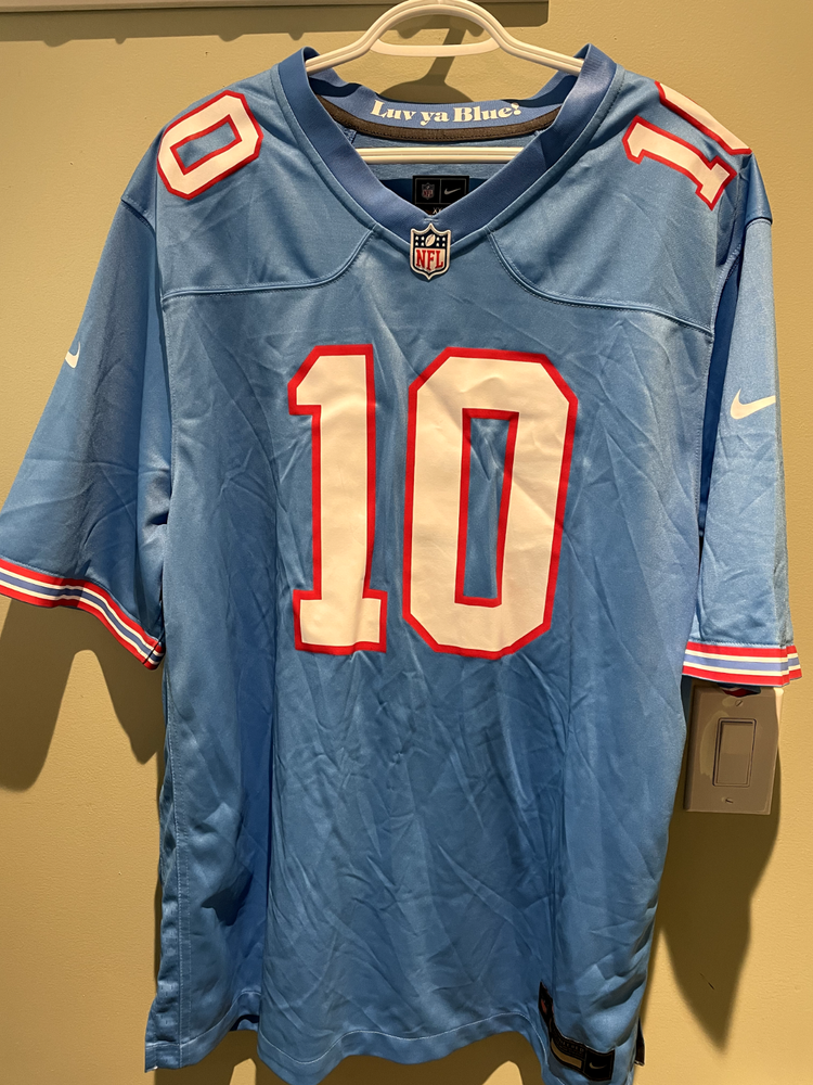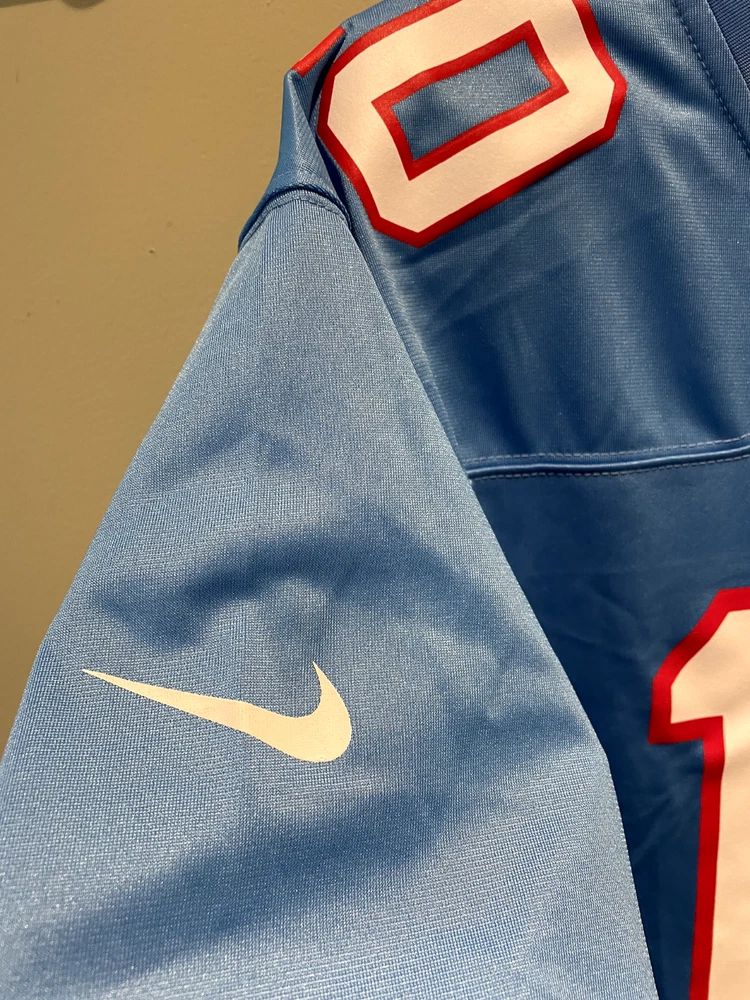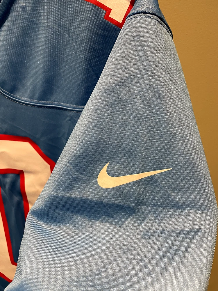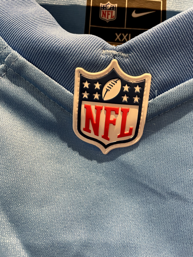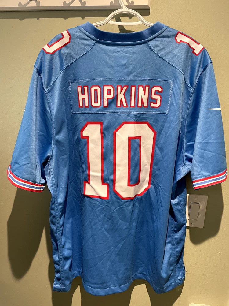 DeAndre Hopkins Tennessee Titans Oilers Nike Throwback Alt Jersey Light Blue. There is a slight factory defect in the last name on the back of the jersey. Never worn. Size XXL.