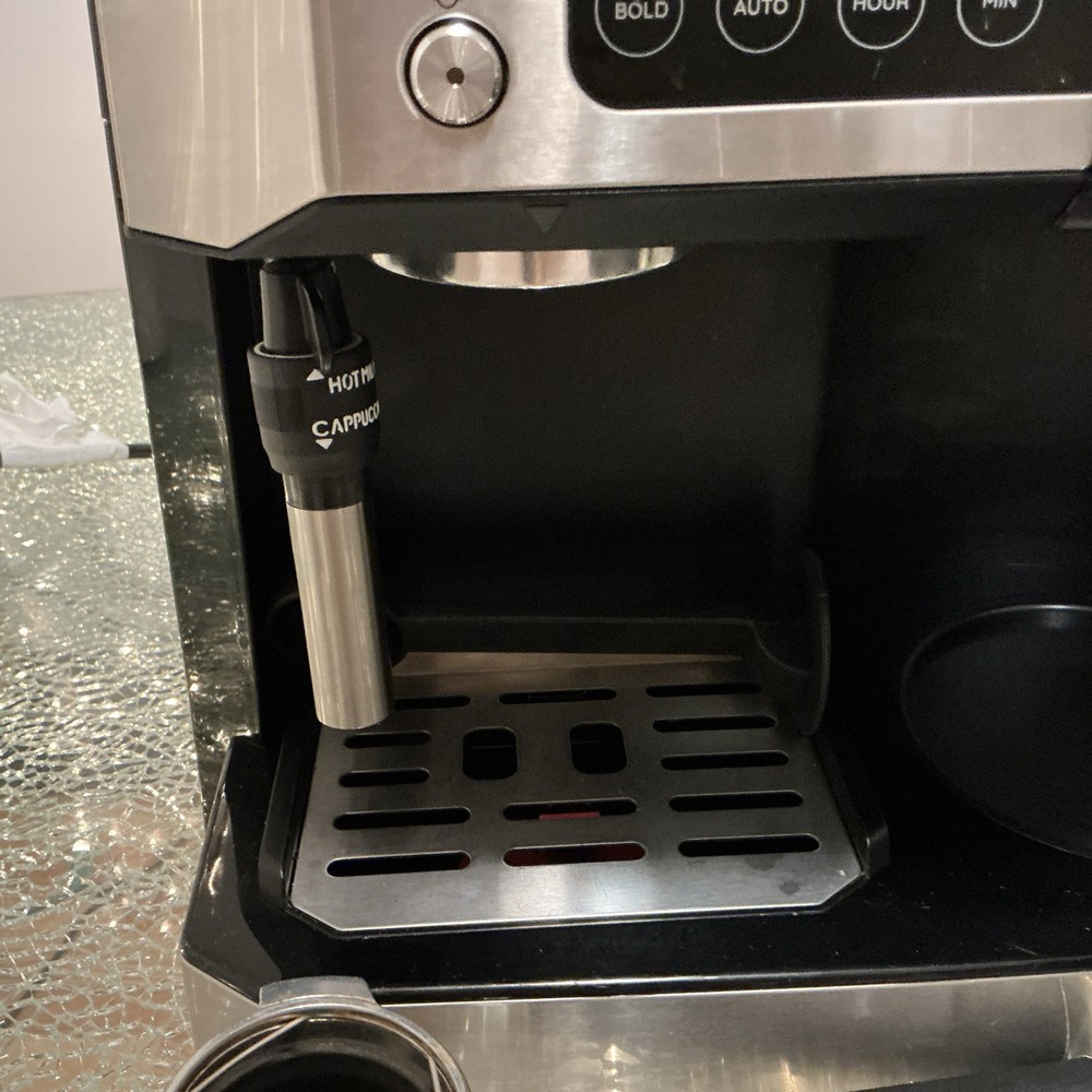 The De'Longhi COM530M All-in-One Combination Coffee and Espresso Machine in Black is a versatile appliance that offers 10 cups of coffee and espresso with its 15 bar pressure system. Made of stainless steel and featuring a digital control panel, this machine allows for easy operation and maintenance. With the ability to make espresso macchiato, espresso, latte macchiato, mocha, hot milk, and cappuccino, this machine is perfect for coffee enthusiasts looking for a convenient and high-quality option for their home.