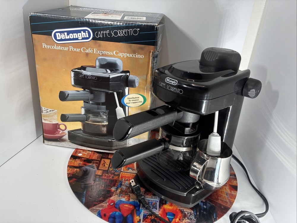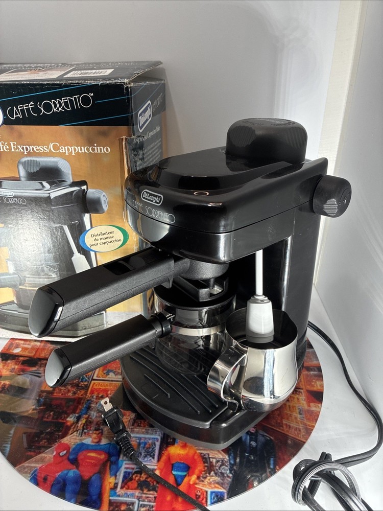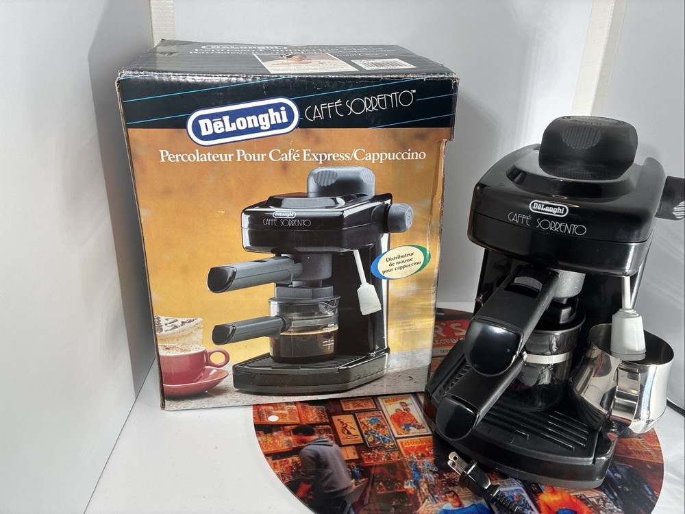 The DeLonghi Caffe Sorrento 4-Cup Espresso and Cappuccino Maker is a sleek and powerful machine perfect for coffee lovers. With a water tank capacity of 1 qt and the ability to make 4 cups of coffee at a time, this espresso machine is ideal for brewing your favorite beverages. The frothing cup feature allows you to create creamy foam for your cappuccinos, while the stainless steel construction ensures durability. The analog control panel and quick heat-up time of 30-35 seconds make operation easy and efficient. Enjoy barista-quality coffee in the comfort of your own home with the DeLonghi Caffe Sorrento.