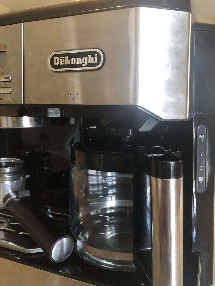 Brand De'Longhi Capacity 10 Cups Color Silver-Black Product Dimensions 11"D x 14.5"W x 12.7"H Coffee Maker Type Espresso Machine Material Glass 1 machine does it all: 1 side makes authentic 15-bar espresso, cappuccino and latte, while the other side brews exceptionally delicious coffee. Flavor savor brew system: De’longhi’s patented coffee brewing system extracts maximum flavor and aroma for a robust coffee experience. Front-loading system: Both water and coffee reservoirs are conveniently located with frontal access for drip coffee – no need to move the machine. Your foam, your way: The advanced cappuccino system mixes steam and milk to create a rich, creamy froth for evenly textured drinks – just the way you like them. Filtered water for a better brew: The advanced active carbon filter keeps water fresh and free of impurities for better-tasting brewed coffee. Included components: Water filter Product specifications Measurements Capacity 10 Cups Item Dimensions D x W x H 11"D x 14.5"W x 12.7"H Item Weight 10.25 Pounds Style Color Silver-Black Style BCO430BM Features & Specs Coffee Maker Type Espresso Machine Filter Type Reusable Specific Uses For Product coofee making , milk frothing Materials & Care Material Glass Top Brand: De'Longhi Highly Rated 100K+ customers rate items from this brand highly Trending 100K+ orders for this brand in past 3 months Low Returns Customers usually keep items from this brand For Espresso and drip coffee lovers alike, The De’Longhi combination pump espresso/drip coffee machine, BCO430BM, offers the best of both worlds. This all-in-1 machine prepares coffee, cappuccino, espresso and even lattes to perfection using an innovative preparation system with simple steps for the at-home user. This new machine can brew two drinks at once, with a full cappuccino system on one side and a drip coffee machine on the other. It features 15 bars of pressure for drawing the most flavor and desired temperature in each cup of espresso, delivering customized, quality flavor every time. For drip coffee, It also features a frontal loading system, which allows you to load water and coffee from the front of the machine without having to move it from under the cabinet. The 24-hour programmable timer allows you to have a pot of coffee waiting for you when you want it. Experience the convenience and quality of this multitasking machine. Rated voltage/frequency (V-Hz): 115 V / 60Hz, Filter (V-shape): Permanent.
