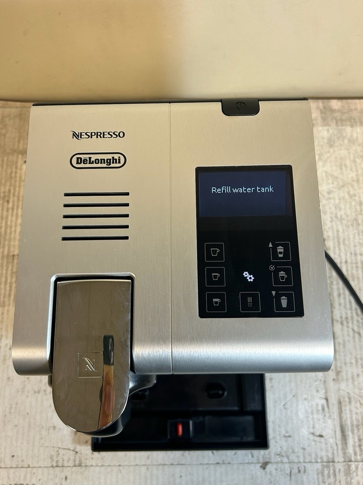 The De'Longhi Nespresso EN750MB Lattissima Pro Original Espresso Machine is a top-of-the-line electrical coffee maker that delivers rich and aromatic espresso in just 20-25 seconds. Made of high-quality aluminum and featuring a digital control panel, this sleek silver machine is designed for convenience and efficiency. With a 1.3L water tank capacity and compatible with Nespresso capsules, this espresso machine is perfect for coffee enthusiasts looking for a premium brewing experience. The included water tank and auto shut-off features make it easy to use and maintain, while the 14 oz bean/coffee capacity ensures a perfect cup every time.