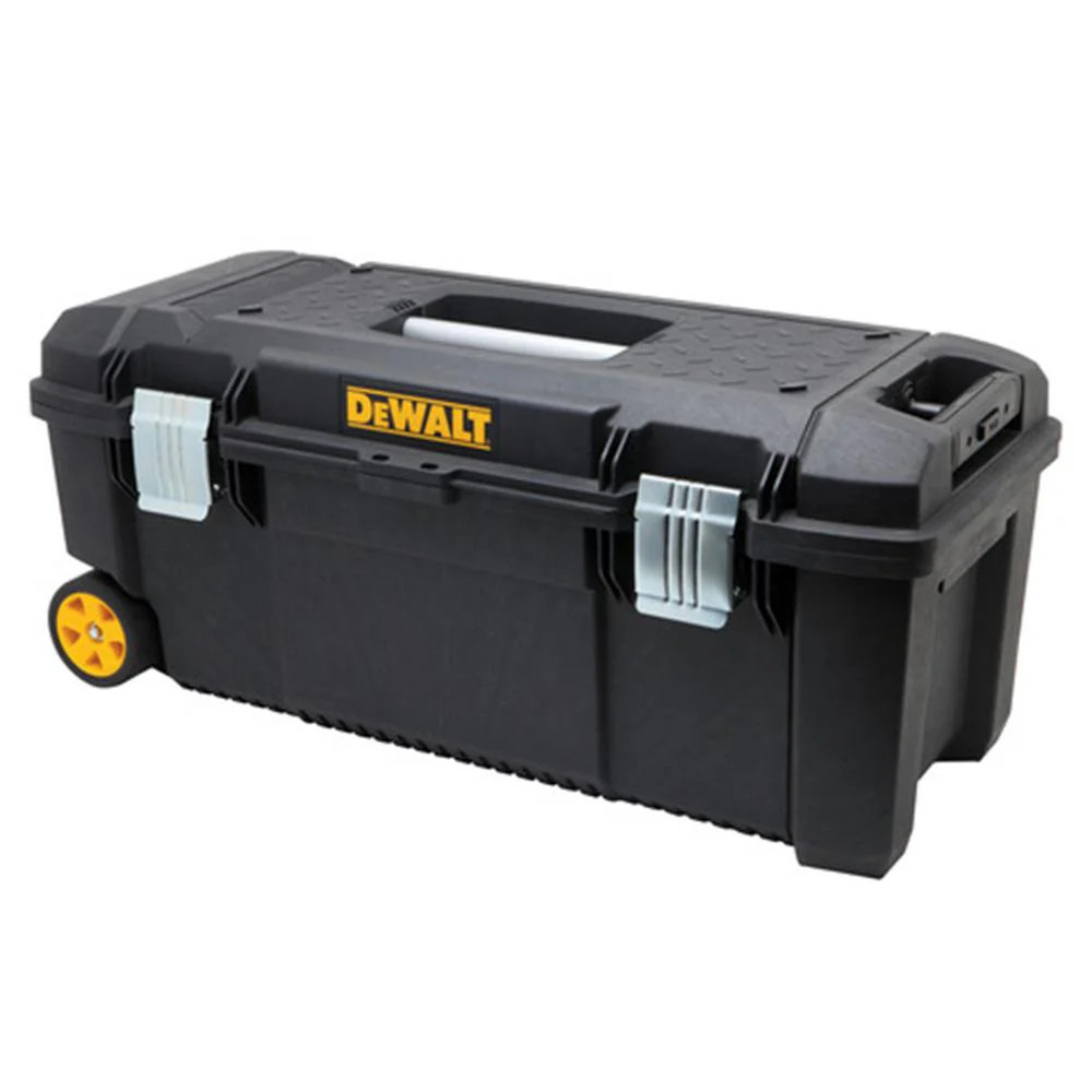 Features Structural foam body with an all-round water seal for water and dust resistance (IP54) Telescopic metal handle and heavy duty wheels allow for ergonomic mobility Large top lid carry handle provides extra maneuverability V-groove on the top of the lid holds in place materials like lumber and pipe for easy cutting Large storage compartment is ideal for carrying power tools, hand tools and medium-to-large items Portable tray Large metal rust-proof latches 80 lbs. load capacity and an 11.9 Gal. of useful volume Padlock eye enable locking the tool box What's in The Box 28-Inch Tool Box on Wheels Owner's Manual Warranty Limited Lifetime Factory Warranty 30 Day Satisfaction Guaranteed Specifications Sku DWST28100 Brand DeWALT Capacity 11.9 gal Handle Type Metal Telescopic Material Construction Foam Body Protection Rating IP54 Length 28-1/2 in. Width 12-1/2 in. Height 12 in. Product Weight 80 lbs. why buy from us? secure & hassle-free shopping All items are covered by manufacturer warranty. fast shipping Most orders delivered in 1-3 business days. customer service Call us toll free: 1-800-629-3325 satisfaction guaranteed All our sales are backed by a 30-day satisfaction guarantee.