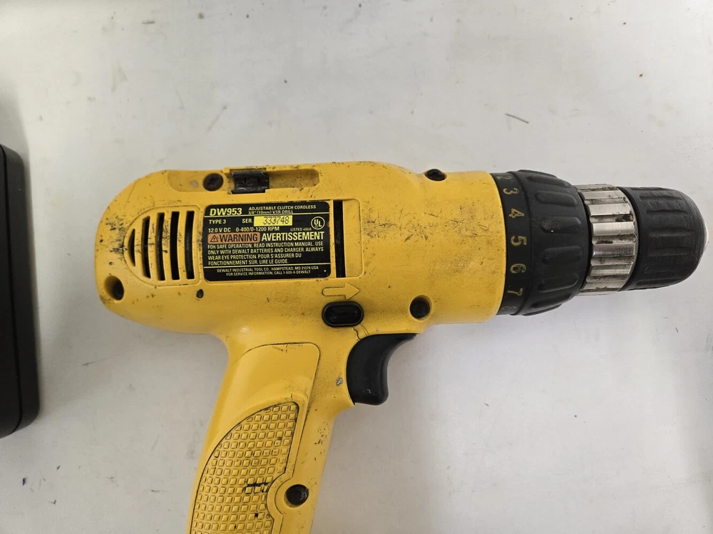 Power Source:CORDLESSAuxiliary Handle:NoSet Includes:TOOL, BATTERY, CHARGERChuck Size:3/8MPN:Does not ApplyBattery Included:YesVoltage:12VNumber of Batteries:1Number of Items in Set:3Battery Technology:LITHIUM-IONColor:YELLOW/ BLACKType:DRILLBrand:DEWALTModel:DW953