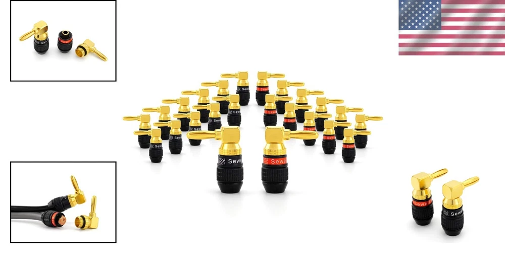 Deadbolt Right-Angle Speaker Plugs - 24K Gold Plated Quick Connect, 12 Pairs ‹ › ‹ › ‹ › ‹ › ‹ › ‹ › ‹ › ‹ › Deadbolt Right-Angle Speaker Plugs - 24K Gold Plated Quick Connect, 12 Pairs Features: Right-angle connector plugs designed to minimize bending stress on your speaker wires. Fast Lock technology with self-crimping teeth for an effortless and reliable connection. Wider base design reduces the risk of shorting and maximizes signal transfer. 24K gold plating over steel tip ensures crystal-clear audio and outstanding durability. Compatible with any wire size up to 8 AWG (10 AWG suggested). Benefits: Experience superior audio quality by ensuring optimal connection from your speaker cable to your receiver. Self-crimping technology makes installation quick, simple, and tool-free—taking only 10-20 seconds! Low-profile design allows for closer placement of your speakers or receiver to walls, creating a sleek appearance. Permanent, robust connection enhances reliability over traditional bare wire connections that can fray or detach. Ideal for various audio/video receivers and speaker wall plates, ensuring compatibility with all your devices. Why choose Deadbolt Right-Angle Speaker Plugs? Enhance your home audio experience with our Deadbolt Right-Angle Speaker Plugs featuring 24K gold plating for the best signal quality and durability. Designed to avoid the bending stress that can damage your wires, these connectors redefine convenience and performance. The tool-free installation process allows you to connect effortlessly, so you can focus on enjoying your audio without the hassle. Don't compromise on sound; choose our Deadbolt plugs for a lasting and reliable connection. Make the wise choice for your audio setup today—order your 12 Pairs of Deadbolt Right-Angle Speaker Plugs! Shipping Free & Fast Shipping - We offer free shipping to most of the USA with a normal delivery time of 3-7 days. However, due to the current situation, additional delivery time (up to 3 weeks) may be required for some items. Alternative Carriers - We may use alternative carriers (e.g. USPS, FedEx, UPS, etc.) to ensure your package arrives safely and on time. Due to the use of multiple carriers, we are unable to provide a tracking number automatically. Handling Time - Orders are processed and shipped within 1-2 business days of receiving cleared payment. Shipping Restrictions - Shipping to Alaska, Hawaii, Puerto Rico, Guam, and other US territories may incur shipping charges or delivery restrictions. Please contact us before ordering, or your order can be refunded/cancelled. State Restrictions - There may be restrictions based on your state of purchase. For example, certain items may not be shipped to California due to state regulations. Contact for Tracking Updates - If you require tracking updates or have any concerns about the delivery of your order, please feel free to contact us, and we will be happy to assist you. Return Please see our eBay Return Policy. Thank you. Payment We accept all major credit cards, PayPal, and Apple Pay for your convenience. Your payment information is secure and encrypted to ensure a safe and seamless transaction. Please complete your payment within 3 days of purchase to avoid any delays in shipping. Feedback Your feedback is extremely important to us. We strive to provide the best products and customer service possible. If you are satisfied with your purchase, please take a moment to leave us a positive review. If you have any concerns or issues with your order, please contact us before leaving negative feedback. We are committed to resolving any problems and ensuring your satisfaction. Contact Us If you have any questions or concerns, please feel free to reach out to our customer support team. You can contact us through the eBay messaging system. We are available Monday to Friday, 9:00 am to 5:00 pm EST, and we will do our best to respond to your inquiry within 24 hours. Thank you for supporting our small family business! UPC: Not Set Unit Quantity: 12 pairs Charging Power Range: Not Set Item Height: Not Set Item Length: Not Set Item Width: Not Set Connector A: Banana Male Connector B: None/Raw Features: Gold Plated,Right Angle Adapter,Fast Lock,Self-crimping connection,Wider base,No tools required,Quick connect Compatible Brand: Not Set Compatible Model: Universal Brand: Unbranded Type: Connector Cable Length: Not Set Connection Split/Duplication: 1:1 Output Voltage: Not Set MPN: Not Set Unit Type: lb Color: Gold Gauge: 8 AWG Country/Region of Manufacture: Not Set Fiber Type: Not Set Manufacturer Warranty: Not Set