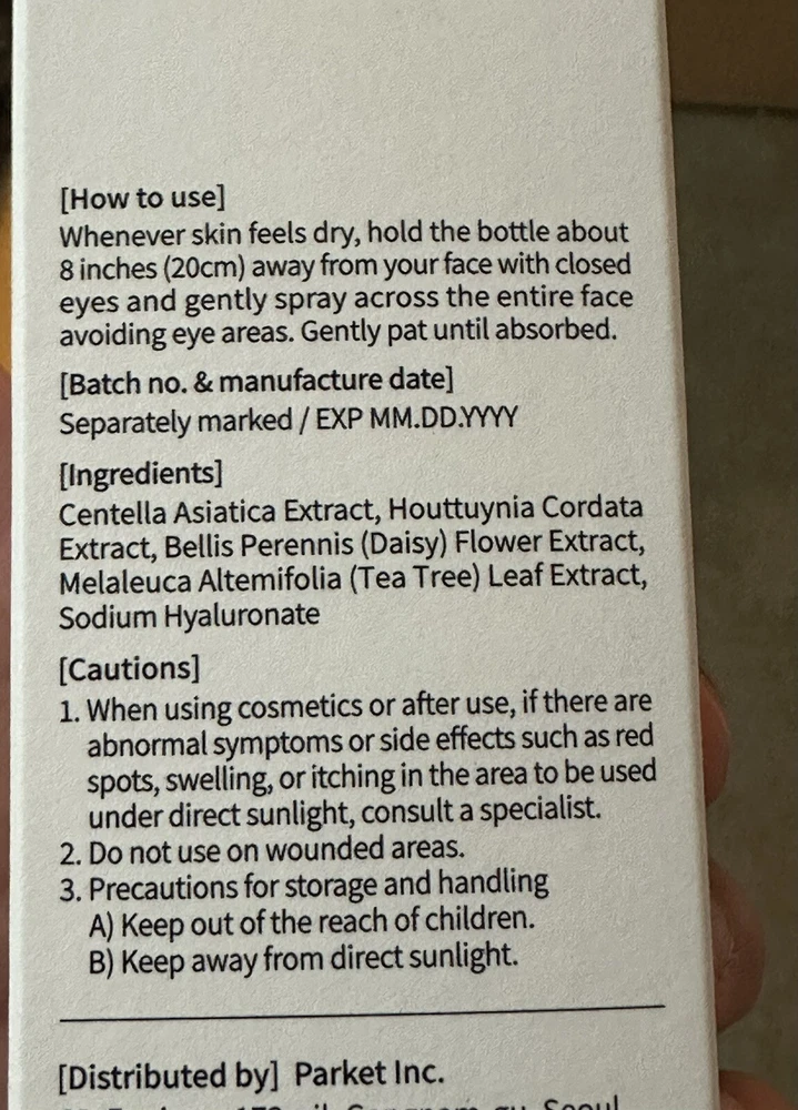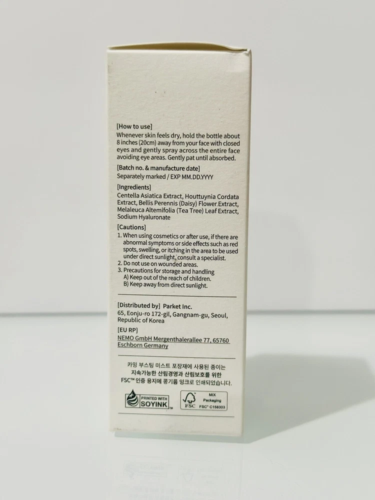 Department: Unisex Set Includes: Daily Use UVA Protection: See description for details Brand: MIXSOON UPC: 8809732911163 Country/Region of Manufacture: Korea, Republic of Type: Daily Use Active Ingredients: Centella Asiatica Extract, Tea Tree Extract Color: Clear Sun Protection Factor (SPF): SPF Body Area: Face Formulation: Mist Volume: 1.60 Fl.oz Product Line: MIXSOON Calming Boosting Mist Ingredients: Centella Asiatica Extract, Houttuynia Cordata Extract, Tea Tree Leaf Extract, Daisy Flower Extract, Sodium Hyaluronate Skin Type: All Skin Types Expiration Date: 4/2026 gtin13: 8809732911163 Main Purpose: Moisturizer, Redness, Stress Relief, Hydrates, Soothing MPN: Does not apply Size: Regular Period After Opening (PAO): 12M Features: Hydrating, Soothing