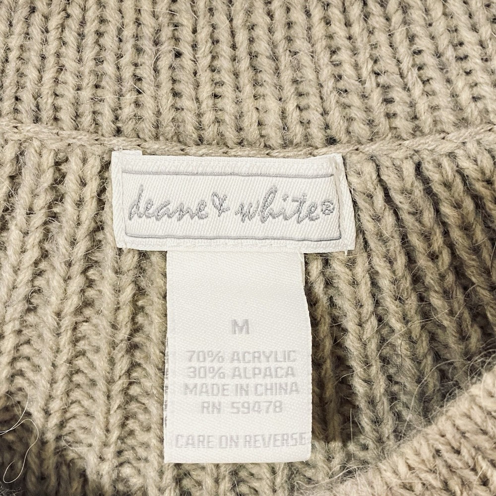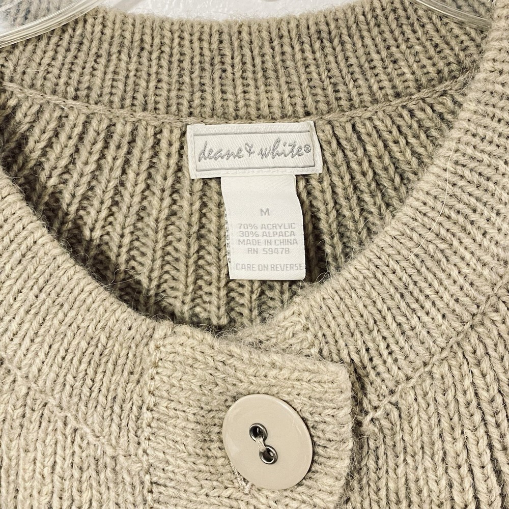 Theme:RetroVintage:NoFeatures:StretchPattern:SolidKnit Style:Tight-KnitSleeve Type:Raglan SleeveDepartment:WomenNeckline:Round NeckSleeve Length:3/4 SleeveSize:MAccents:ButtonBrand:Deane + WhiteStyle:CardiganSize Type:RegularMaterial:Alpaca, AcrylicFabric Type:KnitType:SweaterColor:BeigeSeller Notes:“~ MEASUREMENTS are in the last photo ~ Excellent, no flaws.”