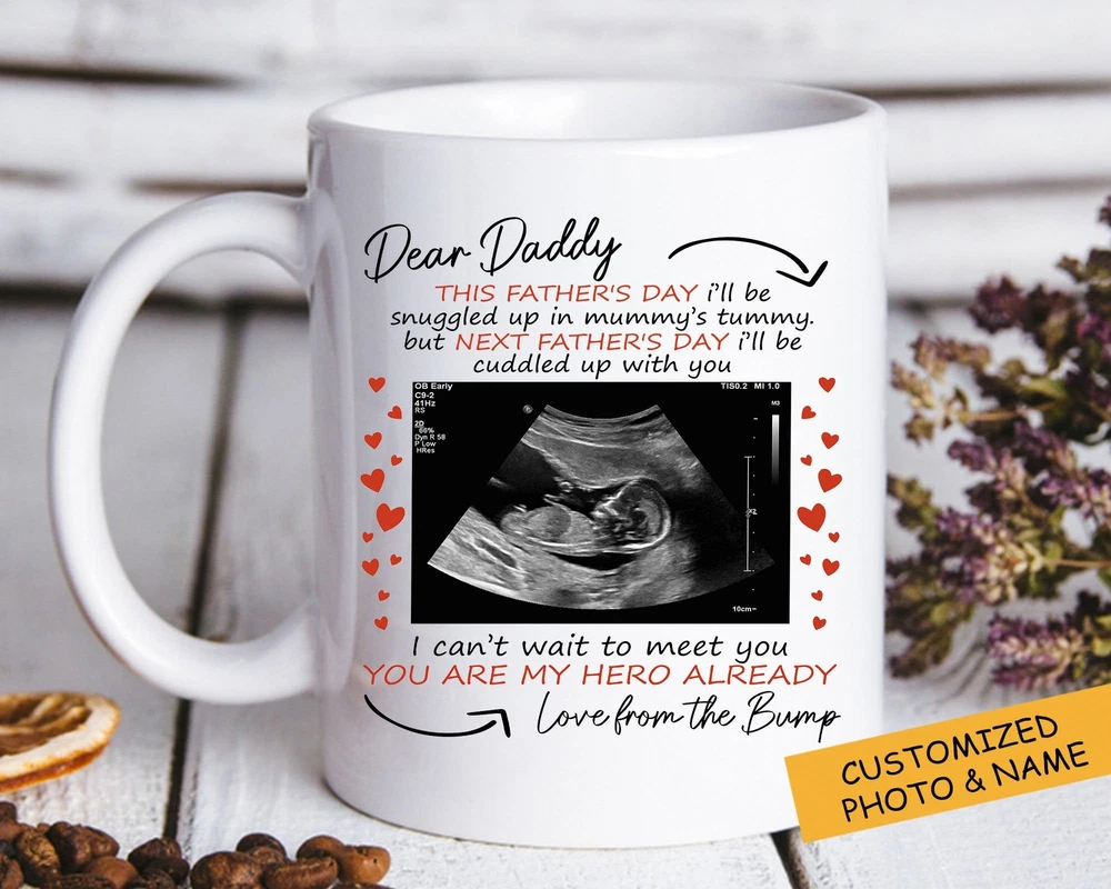 Dear Daddy Personalized Mug Custom Ultrasound Mug Fathers Day Gift New Baby Gift Product Details.. This high quality 11oz. ceramic white mug has a premium hard coat that provides crisp and vibrant color reproduction sure to last for years. Perfect for all hot & cold beverages. The highest quality printing possible is used. It will never fade no matter how many times you wash it. Material: 100% Ceramic. Print both sides. Dishwasher and Microwave Safe. High Gloss + Premium White Finish. Printed in the U.S.A. Personalized & Custom. We support personalized and custom mug to add custom, when placing an order, you can add notes to the "order note" in shipping address section. Also you can contact us directly via message. Shipping Info. Ready to ship in 1 to 2 business days, All products are made-to-order and proudly printed in the United States. Shipped by USPS and DHL, You will receive your order in 5-7 days. Replace & Refund. All products are defective during shipping broken, chipped will be replaced free of charge. You are not satisfied with the product, we will refund 100% money to you. If any other issues arise, please do not hesitate to message, we would be more than happy to assist you.