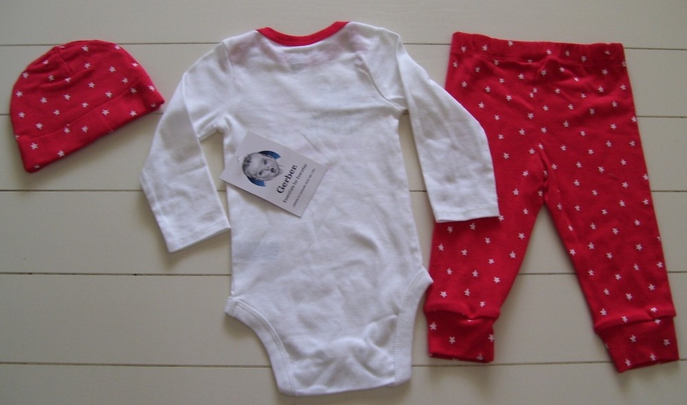 Gerber 3 Pc Dear Santa Put Me On the Nice List Christmas Long Sleeve Bodysuit, Pants, and Hat Outfit. Size 3-6 Months. New with tags. Weight: 12-16 Pounds Height: 24-26 Inches Smoke and Pet free home. Winning bidder to pay within 3 days listing end. Check out my other listings for more great deals! RETURN POLICY DETAILS Returns are accepted with prior approval ONLY if item is misrepresented in the listing. You must contact me first before returning an item. I do NOT accept returns for buyer choosing the wrong size/item not fitting. There are NO returns/refunds on pageant and special occasion wear.