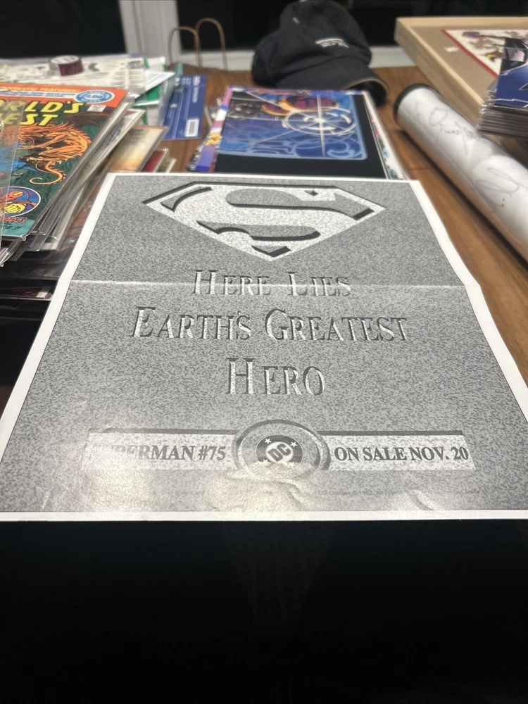 Signed:NoFeatures:1st EditionType:PosterUniverse:DC UniverseCountry/Region of Manufacture:United StatesMaterial:Gloss PaperCharacter:SupermanOriginal/Licensed Reproduction:OriginalFraming:UnframedConvention/Event:San Diego Comic ConYear of Production:1992