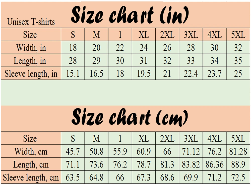 WELCOME TO OUR STORE If you are looking for a shirt for yourself or a gift for a loved one, our store is the perfect place to help you do it. We have a wide variety of t-shirt designs for you to choose from. We have attached the size chart so you can choose the right size. DESCRIPTION: Brand: Gildan Decoration type: Digital Print Material: 100% Cotton Available sizes: S, M, L, XL, 2XL, 3XL, 4XL (we also have 5XL if you request) SHIPPING: We proudly as American based company ship to the lower 48 states. SERVICE: Due to lighting effect and computer color, the actual color may be slightly different from the picture. Hope for your understanding on this. But customers who have used our products are very satisfied with the products they receive from us. We do not accept returns of goods for the following reasons: Customers choose the wrong size. we only accept return for damage or bad printing result FEEDBACK: The satisfaction of our customers is the first place for us. If you are happy with your purchase, PLEASE take a moment to leave Positive feedback for us. We really appreciate that. If you are not happy with the purchase, PLEASE contact us to resolve the problem. We are always here to give you the best solutions. THANK YOU SO MUCH, HAVE A GOOD DAY!
