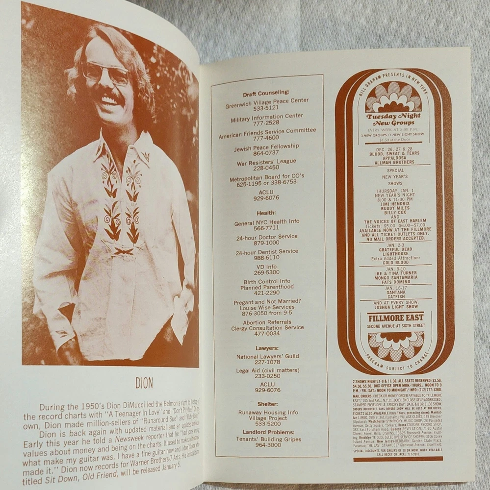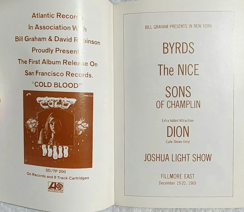 Original December 19-20, 1969 Fillmore East program. Great shape. 5.00 shipping.