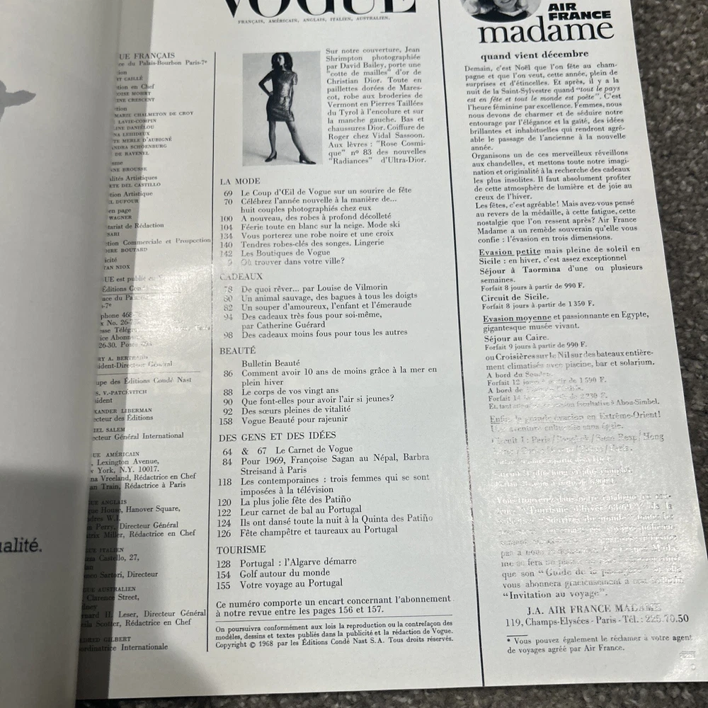 This French edition of Vogue magazine from December 1968 features the iconic Barbara Streisand and includes articles on fashion and style. The publication is a great addition to any collection of vintage magazines and is a must-have for fans of Streisand and fashion enthusiasts alike. The content is written in French and the magazine is categorized under Books & Magazines and Magazines.