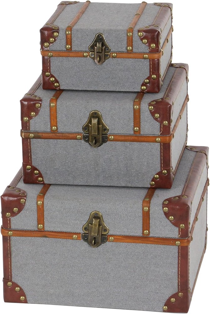 Deco 79 Wooden Decorative Box Upholstered 3 PIECES SMALL SIZE, Gray Product Details Brand: Deco 79 Color: Gray Material: Engineered Wood Special Feature: Lockable Style: Rustic Recommended Uses For Product: Home Product Dimensions: 12"L x 12"W x 7"H Capacity: 12 Liters Closure Type: Latch Water Resistance Level: Not Water Resistant Item Weight: 9 Pounds Opening Mechanism: hinged,latch Shape: Rectangular Pattern: Solid Number of Items: 1 Storage Volume: 12 Liters Number of Compartments: 3 Unit Count: 1.0 Count Item Package Quantity: 1 Item Weight: 9 pounds Manufacturer: Deco 79 Country of Origin: China Item model number: 54070 Fabric Type: Burlap9.00%; PU - 1.00%; Assembly required: No Number of pieces: 1 Batteries required: No Included Components: Box Burlap9.00%; PU - 1.00%; TRADITIONAL DECORATIVE STORAGE BOXES: Designed with the essence of timeless sophistication, where rich old-world textures and warm hues come together for a refined classic taste of understated luxury WOODEN DECORATIVE STORAGE CONTAINERS: This mdf and fabric box set with lid features is made from medium density fiberboard materials and fabric GRAY AND BROWN GIFT BOXES: This traditional style wood fabric box set comes in a gray finish RECTANGLE KEEPSAKE BOXES: These traditional style inspired design gray wood and fabric storage box decors feature a timeless appeal from its fabric surface to its riveting detail and metal latch lock 3 SMALL SIZE TREASURE BOXES: Each gray wooden box measures 12L x 12W x 7H , 10L x 10W x 6H, 8L x 8W x 4H inches, and collectively weighs 8.62 lbs A practical yet stylish upgrade that instantly elevate the look of your room. Perfect way to add depth and texture to your surface space with this compact and discreet box. These wood and fabric boxes will make a great corner filler or shelf decor as well as a handy storage space for small objects. Designed with felt or rubber stoppers at the base that prevent scratching furniture and table tops, as well as sliding around. This item ships in 1 carton. Brown leather strips and studs and locks serve as accents. Mdf box makes a great gift for any occasion. Suitable for indoor use only. This item ships fully assembled in one piece. This gray colored mdf decorative keepsake box comes as a set of 3. Traditional style.