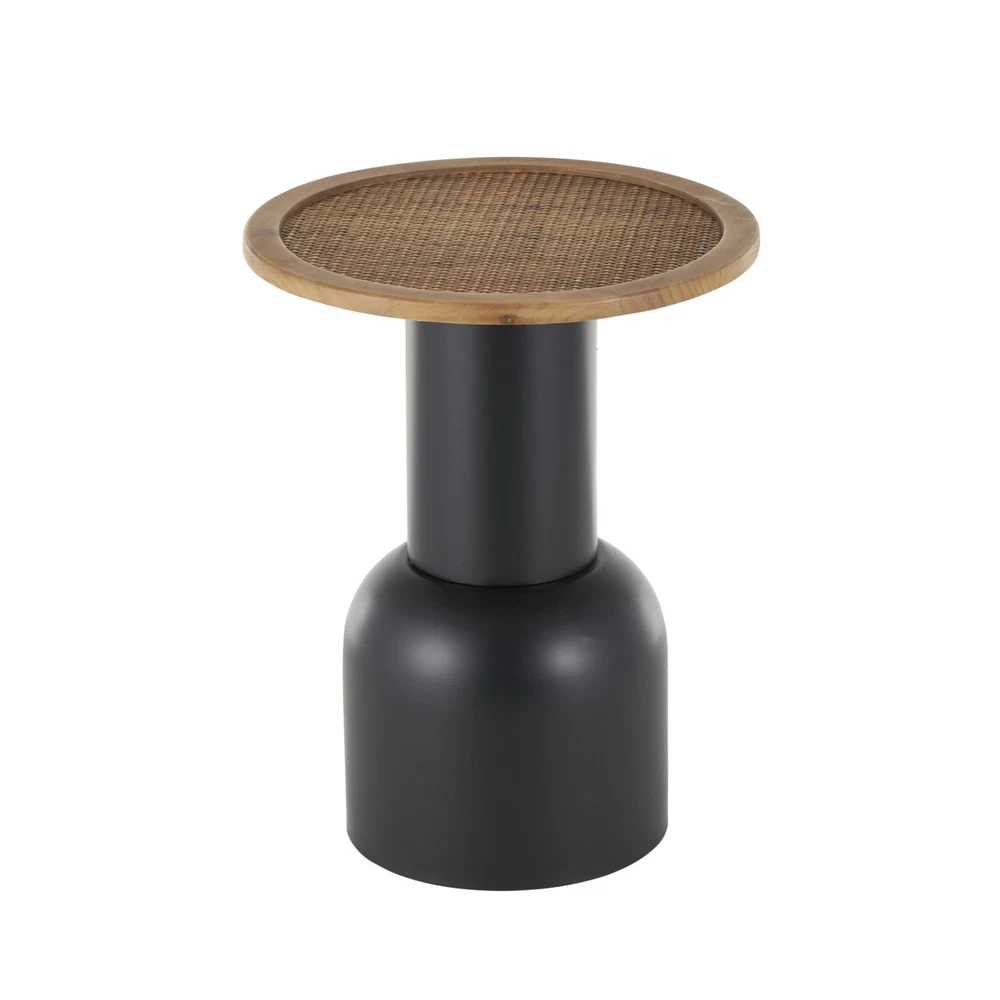 BOHEMIAN TABLE: Designed with a free-spirited charm where vibrant hues, eye-catching patterns, and whimsical accents transform your space and showcase your personality METAL TABLE FOR LIVING ROOM: This black side end accent table is crafted from sturdy iron and MDF, combined with the natural beauty of fir and rattan BLACK AND BROWN LIVING ROOM TABLE: Round table is characterized by a matte black finish that contrasts beautifully with its brown rattan tabletop, resulting in a bohemian aesthetic ROUND SMALL TABLE: Iron accent table stands out with its unique brown rattan tabletop which adds an element of organic texture to the overall look LARGE SIZE CORNER TABLE: The black metal accent table measures 15.63L x 15.63W x 20H inches, and weighs 6 lbs