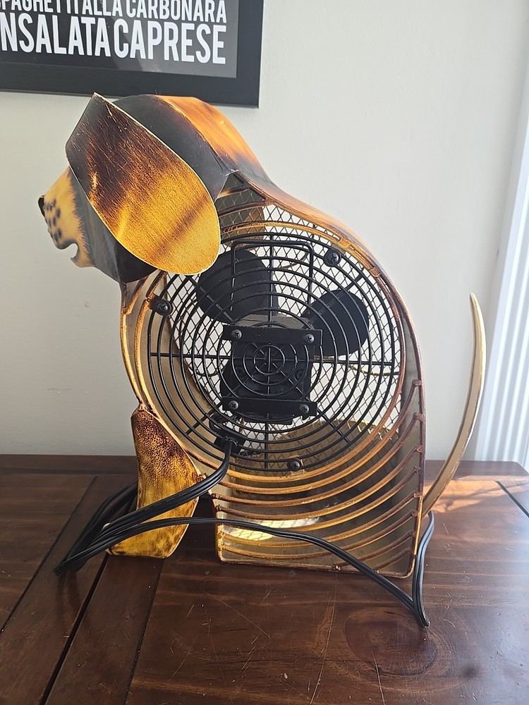 Deco Breeze Dog Figure 15"H. Hand Crafted Electric Metal Fan Hound Lab Desk Fan Tested and works, pet free, smoke free home