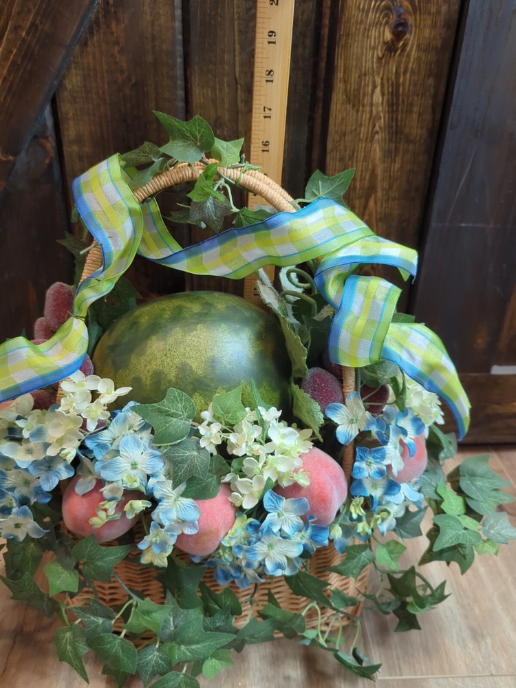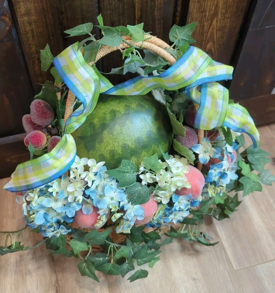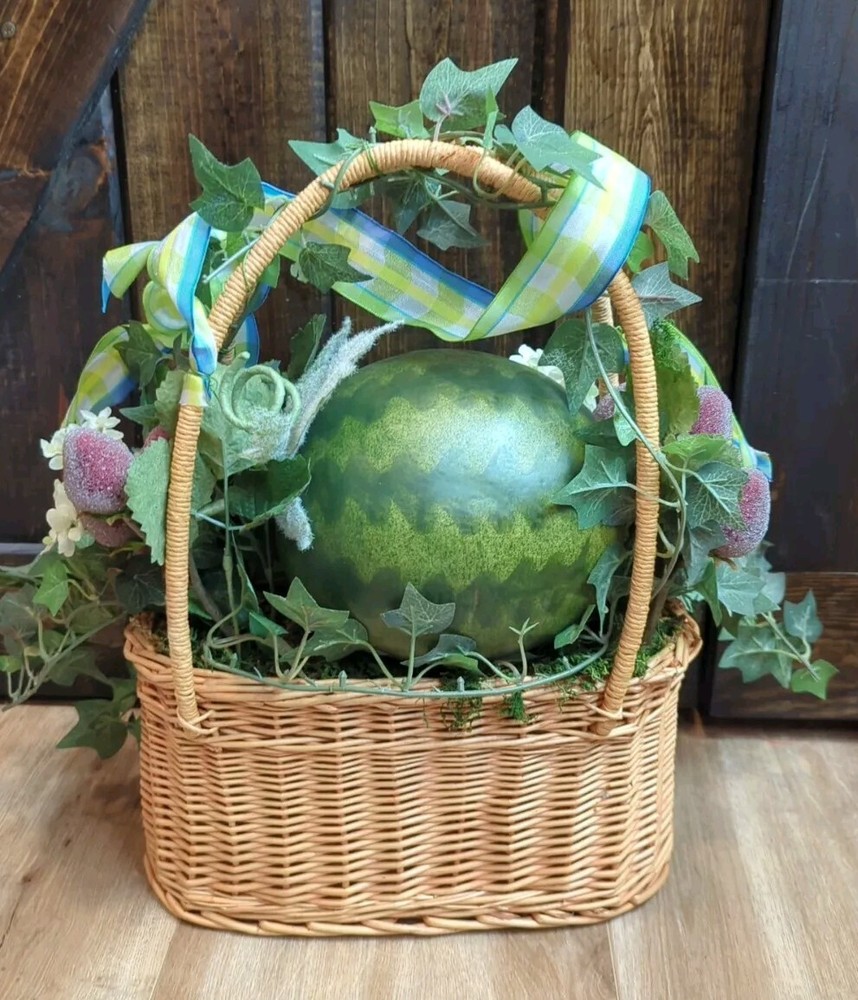 Decorative Watermelon Fruit Floral 18" Door Wall Artificial Hanging Wreath . Good overall condition. The flowers could be fluffed back up a little. Please see pictures for details. See our other listings for more unique finds.