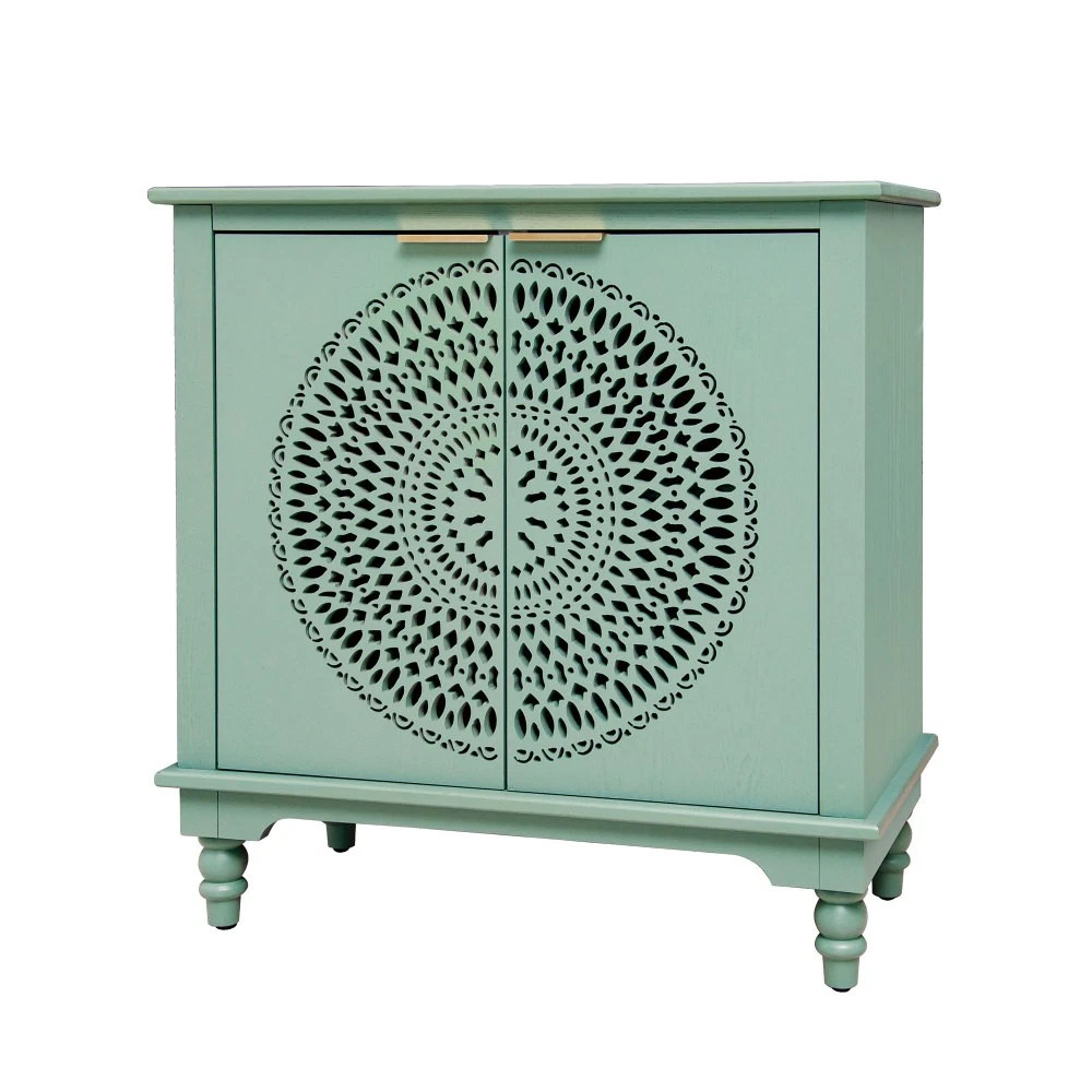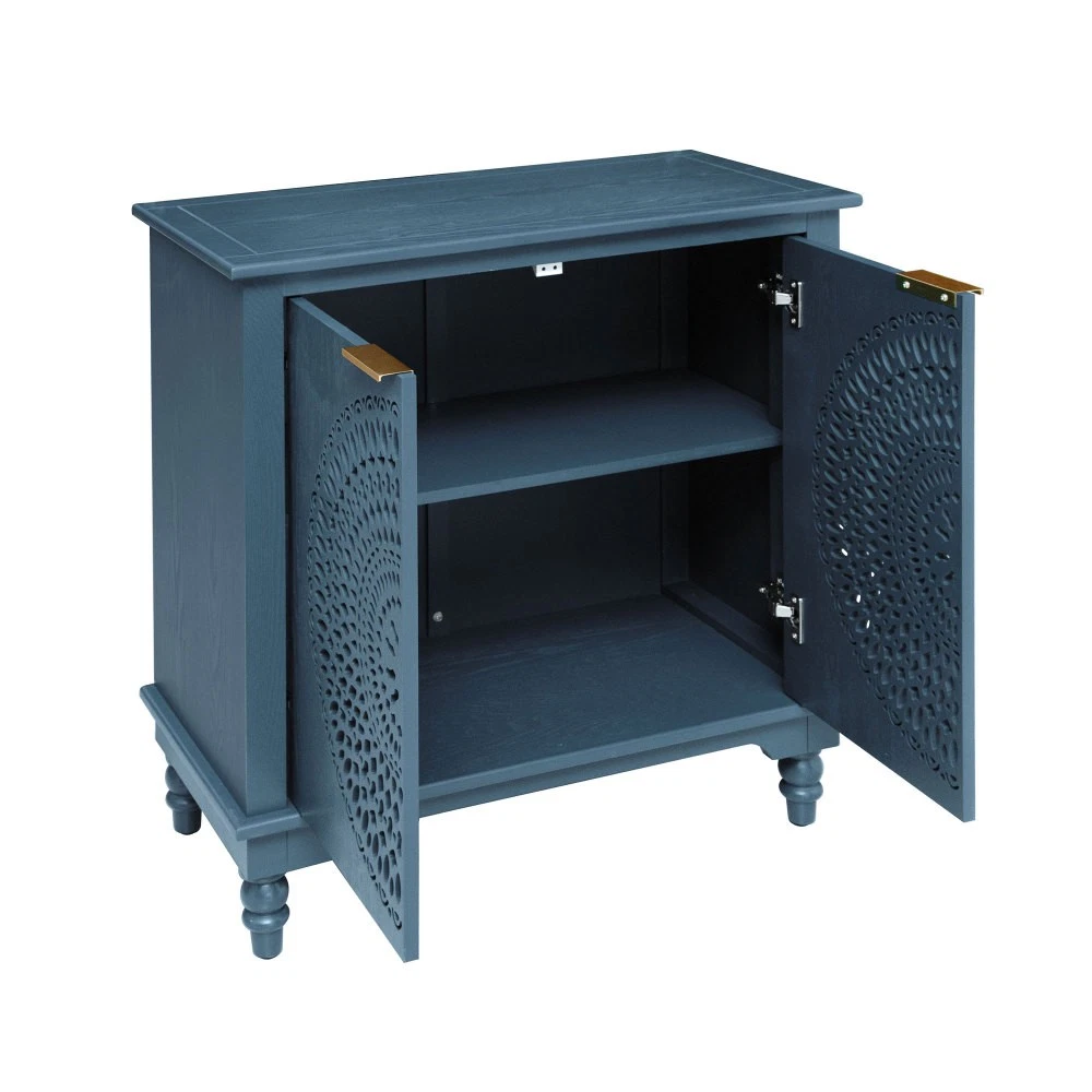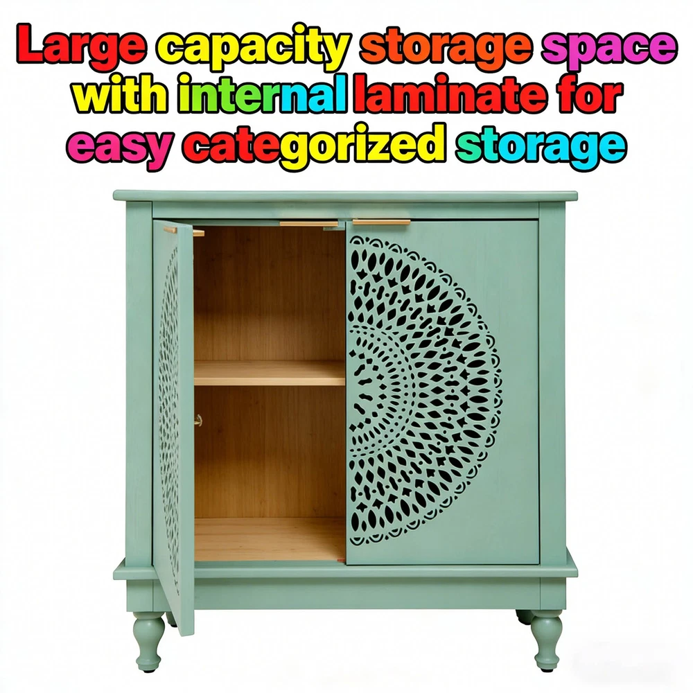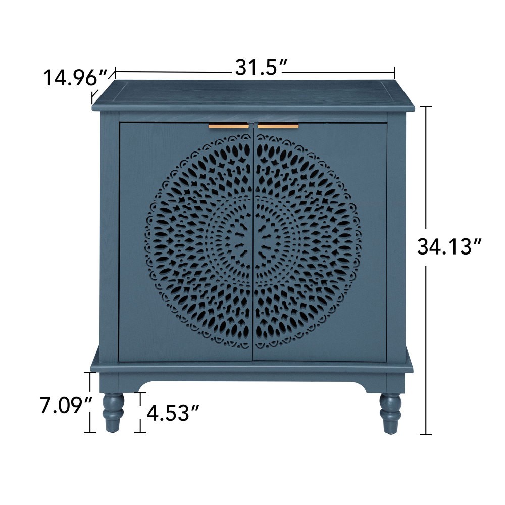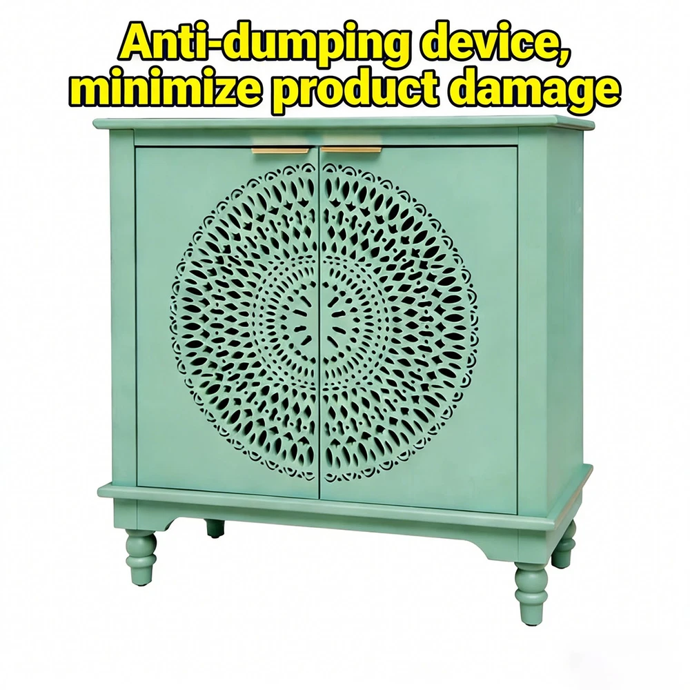 American Style Hollow-Carved 2-Door Accent Cabinet Sideboard Buffet Storage Cabinet for Entryway Living Room Bedroom 🌟 Product Highlights | 1-Year Warranty & 30-Day Free Return 🌟 Elevate your home decor with our exquisitely crafted American-style hollow-carved accent cabinet! Blending timeless design with practical storage, this versatile piece is perfect for entryways, living rooms, bedrooms, and more. Enjoy peace of mind with our 1-Year Quality Warranty and 30-Day Free Return Policy —shop with confidence! 🎨 Available Colors Elegant Blue Soft Light Green 📐 Product Specifications Attribute Blue Cabinet Light Green Cabinet Origin China China Material High-Quality MDF with Manchuria Ash Veneer High-Quality MDF with Manchuria Ash Veneer Assembled Length 31.50 Inches 31.50 Inches Assembled Width 14.96 Inches 14.97 Inches Assembled Height 34.13 Inches 34.26 Inches Product Weight 40.57 Lbs 40.57 Lbs 📦 Packaging Details (Both Colors) Packaging Length: 35.44 Inches Packaging Width: 18.51 Inches Packaging Height: 13.51 Inches Packaging Weight: 46.74 Lbs ✨ Key Features Exquisite Hollow-Carved Design : The cabinet finish boasts delicate hollow patterns that add a touch of elegance to any space. Not only decorative, but the hollow design also enhances air circulation inside and allows easy viewing of your stored items. Spacious & Organized Storage : Featuring a large-capacity interior with an adjustable laminate behind the two doors, this cabinet makes it easy to categorize and store various items—from tableware and books to accessories and more. Stylish Hidden Golden Handles : The hidden installation of the golden handles creates a sleek, seamless look, elevating the cabinet's overall aesthetic appeal. Safe Curved Top Edges : Unlike sharp right-angle edges, the curved edge design of the top panel ensures safer use, making it friendly for families with kids and pets. Premium Finish : Crafted with a smooth and delicate Manchuria ash wood finish, the high-quality MDF is covered with real Manchuria ash veneer, showcasing natural and clear wood grain for a luxurious feel. Anti-Tip Device : Equipped with an anti-dumping device, this cabinet effectively reduces the risk of tipping, providing added safety for your home. Easy Adjustment : Comes with back panel buckles that allow for easy overall fine-tuning, ensuring the cabinet stands stably on any flat surface. 🛡️ Warranty & Return Policy We stand behind the quality of our products. All our accent cabinets come with a 1-Year Warranty against manufacturing defects. If you are not completely satisfied with your purchase, you can enjoy a 30-Day Free Return (no questions asked). Our dedicated customer service team is always here to help—feel free to contact us with any issues! 🏡 Versatile Home Decoration & Storage Solution Whether you need a storage cabinet for your entryway to keep shoes and keys organized, a sideboard for your dining room to store tableware, or a decorative cabinet for your bedroom to display photos and accessories, this American-style hollow-carved cabinet is the perfect choice. Its classic design complements any home decor style, adding both functionality and charm to your space. Don't Miss Out! Add This Stylish & Practical Accent Cabinet to Your Cart Today!