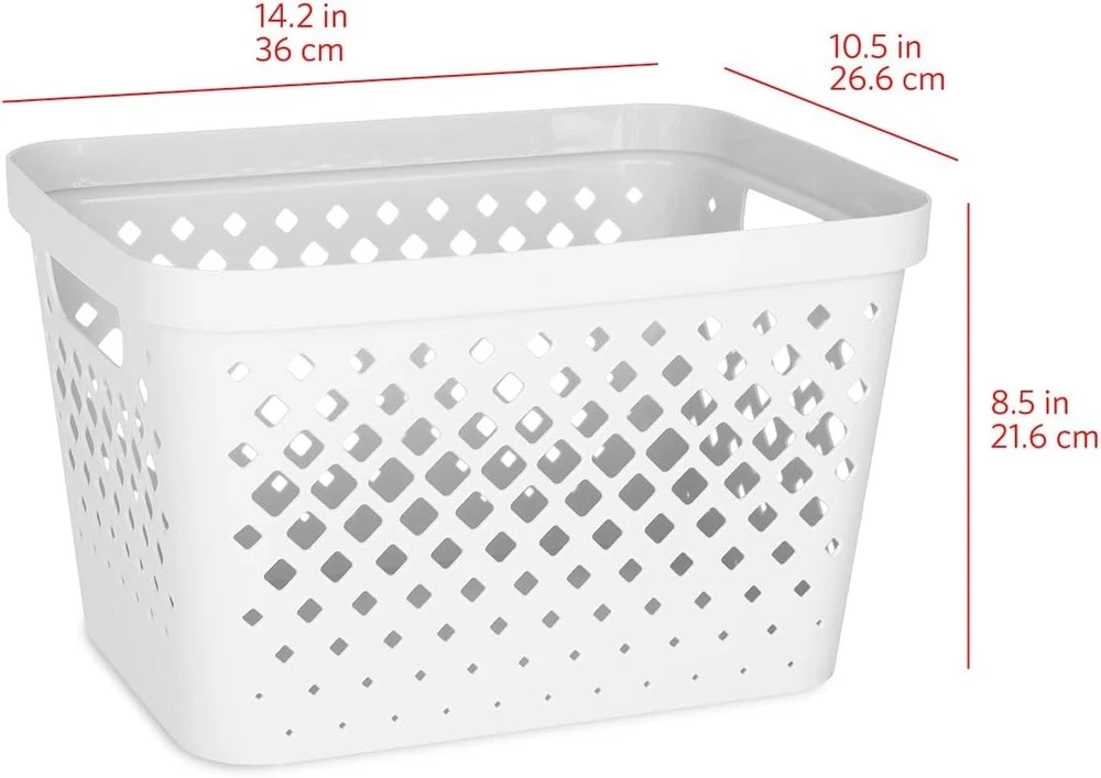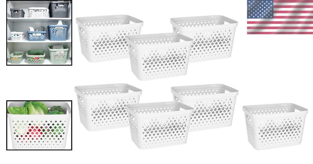 Decorative Plastic Baskets - White, Pack of 6 ‹ › ‹ › ‹ › ‹ › ‹ › ‹ › ‹ › ‹ › Decorative Plastic Baskets - White, Pack of 6 Transform your space with our elegant set of plastic organizational bins, offered in a pristine white finish. Designed to offer a seamless blend of functionality and style, these versatile storage solutions will effortlessly declutter your home. Features: Multipurpose bins perfect for any room: bedroom, bathroom, laundry room, kitchen pantry, college dorm, and office. Ideal for toiletries, hand towels, cleaning supplies, snacks, spices, oils, and more. Each basket holds 4 gallons (16.5 liters), measuring 14.3”L x 10.25”W x 8.5”H. Sturdy plastic construction is easy to clean with a damp or dry cloth. Open design and ventilation holes ensure airflow, perfect for fresh ingredients in the pantry or toiletries in the bathroom. Includes 6 nesting baskets with side handles for effortless transportation. Benefits: Combats clutter effortlessly, bringing order to your living spaces. Enhances organization in kitchens, bathrooms, closets, and offices. Durable design ensures longevity and withstands daily use. Lightweight and portable with side handles – perfect for quick access. Versatile enough to serve as decorative storage in addition to functional organization. Why Choose Our Decorative Plastic Baskets? Experience the harmony of organization and aesthetics with our Decorative Plastic Baskets. Crafted from sturdy plastic and thoughtfully designed with ample storage space, these bins are an ideal solution for maintaining a tidy home. Whether you're decluttering your kitchen pantry or creating a serene bathroom oasis, these baskets enhance every space with elegance and ease. Invest in the beauty of order—order your pack of 6 white decorative plastic baskets now and elevate your home organization today! Shipping Free & Fast Shipping - We offer free shipping to most of the USA with a normal delivery time of 3-10 business days. However, due to various situations, additional delivery time (up to 3 weeks) may be required for some items. Alternative Carriers - We may use alternative carriers (e.g. USPS, FedEx, UPS, etc.) to ensure your package arrives safely and on time. Due to the use of multiple carriers, we are unable to provide a tracking number automatically. Handling Time - Orders are processed and shipped within 1-5 business days of receiving cleared payment. Shipping Restrictions - Shipping to Alaska, Hawaii, Puerto Rico, Guam, and other US territories may incur shipping charges or delivery restrictions. Please contact us before ordering, or your order can be refunded/cancelled. State Restrictions - There may be restrictions based on your state of purchase. For example, certain items may not be shipped to California due to state regulations. Contact for Tracking Updates - If you require tracking updates or have any concerns about the delivery of your order, please feel free to contact us, and we will be happy to assist you. Return 30-Day Hassle-Free Returns - We want you to be completely satisfied with your purchase. If you are not, you can return the item within 30 days of receiving it for a full refund or exchange. Easy Return Process - To start a return, simply contact us and we will provide you with a prepaid return shipping label and detailed instructions. Restocking Fee - There are no restocking fees for returns. However, the buyer is responsible for return shipping costs if the return is not due to a seller's error. Refund Processing Time - Refunds will be processed within 5 business days of receiving the returned item in its condition. Payment We accept all major credit cards, PayPal, and Apple Pay for your convenience. Your payment information is secure and encrypted to ensure a safe and seamless transaction. Please complete your payment within 3 days of purchase to avoid any delays in shipping. Feedback Your feedback is extremely important to us. We strive to provide the best products and customer service possible. If you are satisfied with your purchase, please take a moment to leave us a positive review. If you have any concerns or issues with your order, please contact us before leaving negative feedback. We are committed to resolving any problems and ensuring your satisfaction. Contact Us If you have any questions or concerns, please feel free to out to our customer support team. You can contact us through the eBay messaging system. We are available Monday to Friday, 9:00 am to 5:00 pm EST, and we will do our best to respond to your inquiry within 24 hours. Buy it now and enjoy a pleasant shopping experience! Unit Quantity: 6.0 Material: Plastic Features: Stackable,With Handles Mounting: Free Standing Item Height: Plastic Storage Baskets Item Length: Plastic Storage Baskets Item Width: Plastic Storage Baskets Type: Storage Basket Capacity: 41 - 80 Quarts Item Depth: 10 in Item Weight: 4 lb Number of Items in Set: Six-Piece Color: White Number in Pack: 6 Number of Compartments: 1 Shape: Rectangular Pattern: Diamond Style: Modern Finish: Smooth
