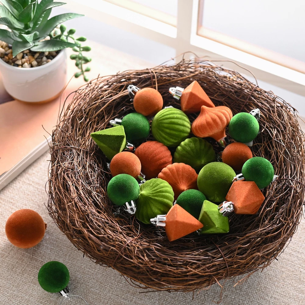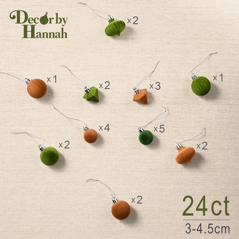 【Velvet Design】The mini Christmas ball ornaments feature a flocked design for added elegance. The soft texture enhances your home decor, elevating the overall aesthetic. Most importantly, there’s no glitter mess anywhere 【Shatterproof Balls】These velvet ornaments for Christmas tree are made of durable plastic to provide excellent shatterproof ornaments 【Kid&Pets Approachable】The Christmas ball ornaments are crafted from lightweight and shatterproof materials, ensuring a comfortable decorating experience for both and pets. They can engage in fun without any concerns 【Ready to Hang】These velvet Christmas ornaments come with pre-threaded hanging strings, making them convenient and easy to hang 【Measurements】24ct in total. Each ball ornament measures about 1.18-1.77inch/3-4.5cm 【Multipurpose Usage】These Christmas decorations are designed for all-season use, perfect for adorning Christmas trees, tabletops, centerpieces, and more during Christmas, Fall, Halloween, Thanksgiving, and beyond 【Complement to the Festival】Visit our brand for matching wreaths and garlands to complete your festive look