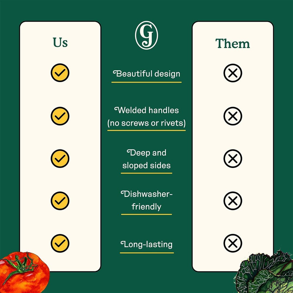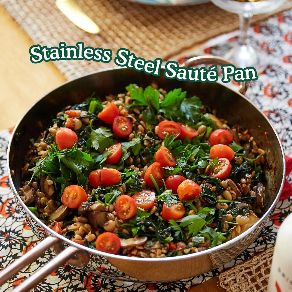 Deep Cut 3-Quart Stainless Steel Sauté Pan | Hybrid Skillet & Sauté Pan with Sloped Sides, Welded Handles | Induction & Oven Safe, Dishwasher Friendly The Best Of Both Worlds: Why choose between a skillet and a sauté pan when you can have both? Deep Cut combines tall sides for splatter-free braising with a wide base and sloped edges for effortless stirring and flipping. Built for Every Stovetop: Whether you’re using gas, electric, or induction, this pan delivers top-notch performance. Plus, it’s oven-safe up to 500°F, so you can go from stovetop to oven without missing a beat. Effortless Style: The welded stainless steel handles mean no food traps, no tricky clean-up spots—just smooth, seamless cooking with ultimate durability. Designed for Confident Cooking: Toss, stir, and sauté with ease! The sloped sides let you flip ingredients like a pro, while the deep design keeps sauces and liquids safely contained. Easy Care: Dishwasher-safe for stress-free cleaning, because the only thing better than a great meal is not having to scrub the pan afterward.