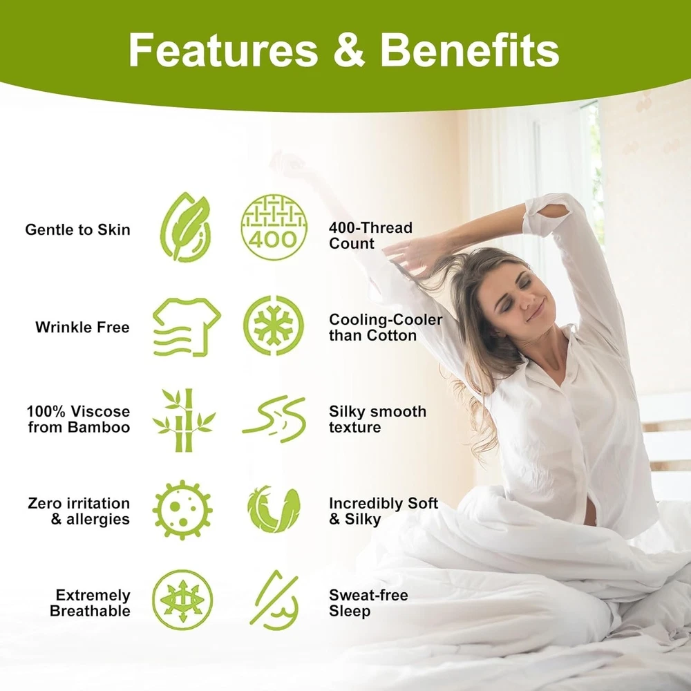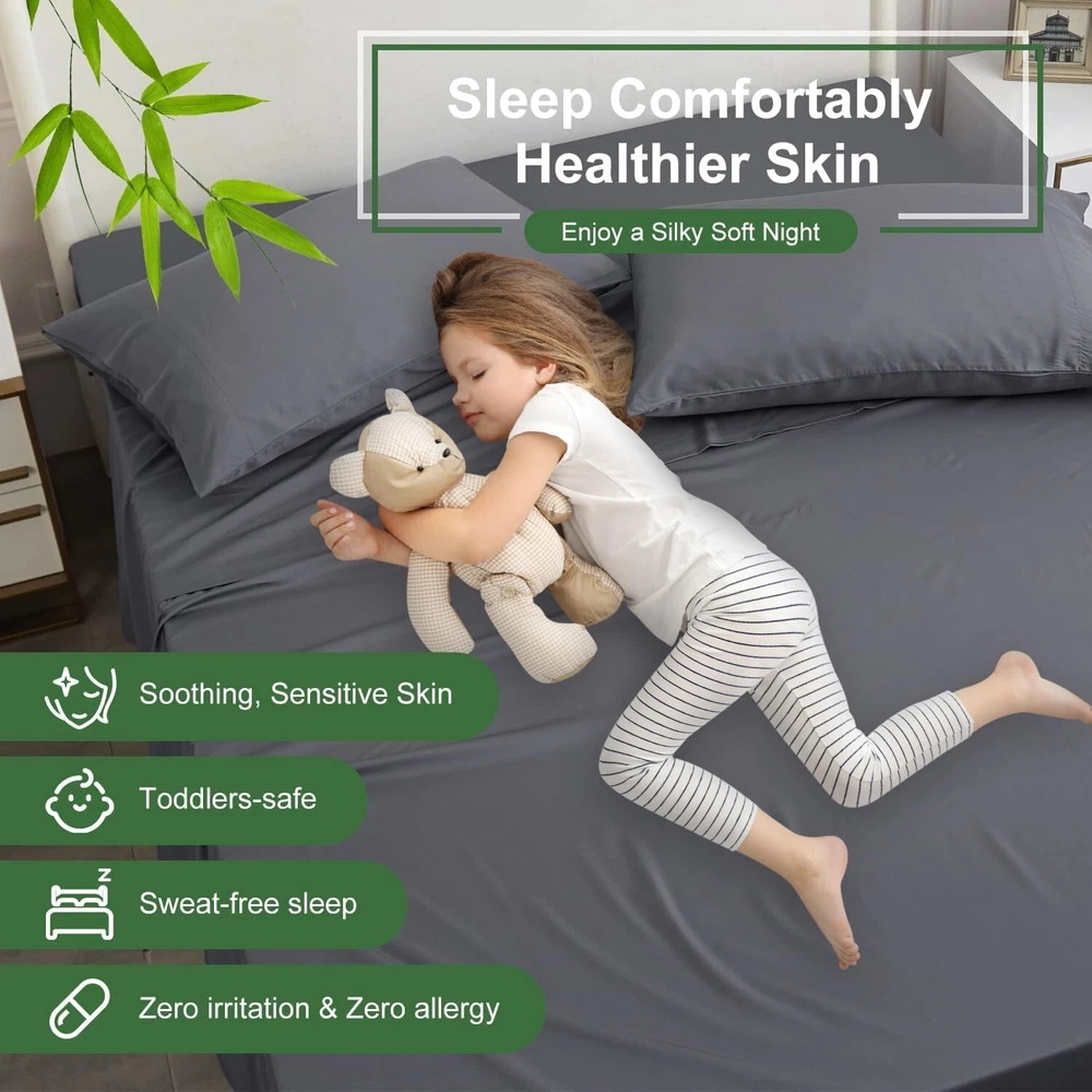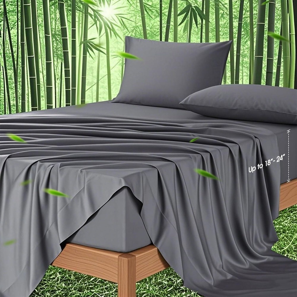 Deep Pocket King Sheets Rayon Bamboo Cooling Soft Breathable Hotel Luxury ‹ › ‹ › ‹ › ‹ › ‹ › ‹ › ‹ › ‹ › ‹ › ‹ › ‹ › Deep Pocket King Sheets - Rayon Bamboo Cooling Soft Breathable Luxury Experience the Luxury of Comfort Indulge in a truly restful night's sleep with our Cooling Bed Sheets Set , designed for those who appreciate the finer things in life. Made from 100% Rayon derived from Bamboo, these sheets boast a luxurious, silky feel that transforms your bed into a sanctuary for relaxation. Key Features: 100% Rayon from Bamboo for irresistible softness. Breathable cooling fabric that adapts to body temperature, ensuring all-season comfort. Extra deep pocket fitted sheets compatible with mattresses up to 24" deep. 4-piece set includes 1 flat sheet (108"x102"), 1 fitted sheet (78"x80"), and 2 pillowcases (20"x40"). Durable and machine washable; shrink and fade resistant. Benefits: Enjoy the smooth, cooling sensation that bamboo rayon provides, keeping you cool during hot nights. Quick-drying and absorbent material keeps you comfortable and prevents overheating. Extra deep pockets ensure a snug fit on all mattresses, including thick and pillow-top styles. Softness improves with every wash, promising increasingly cozy evenings. Hypoallergenic properties make it an ideal choice for sensitive sleepers. Elevate Your Sleep Experience Say goodbye to restless nights and wake up feeling refreshed with our Deep Pocket King Sheets Set. With a luxurious feel akin to the finest silk or cotton, these cooling sheets will redefine your sleeping experience. Each detail is meticulously crafted to offer you comfort and support, making bedtime something to look forward to every night. Transform your bedroom into a luxurious retreat with our sheets that embrace you in softness while adapting to the rhythms of your body. Don't settle for less—choose the epitome of comfort and elegance for your sleeping sanctuary. Shipping Free & Fast Shipping - We offer free shipping to most of the USA with a normal delivery time of 3-7 days. However, due to the current situation, additional delivery time (up to 3 weeks) may be required for some items. Alternative Carriers - We may use alternative carriers (e.g. USPS, FedEx, UPS, etc.) to ensure your package arrives safely and on time. Due to the use of multiple carriers, we are unable to provide a tracking number automatically. Handling Time - Orders are processed and shipped within 1-2 business days of receiving cleared payment. Shipping Restrictions - Shipping to Alaska, Hawaii, Puerto Rico, Guam, and other US territories may incur shipping charges or delivery restrictions. Please contact us before ordering, or your order can be refunded/cancelled. State Restrictions - There may be restrictions based on your state of purchase. For example, certain items may not be shipped to California due to state regulations. Contact for Tracking Updates - If you require tracking updates or have any concerns about the delivery of your order, please feel free to contact us, and we will be happy to assist you. Return 30-Day Hassle-Free Returns - We want you to be completely satisfied with your purchase. If you are not, you can return the item within 30 days of receiving it for a full refund or exchange. Easy Return Process - To start a return, simply contact us and we will provide you with a prepaid return shipping label and detailed instructions. Restocking Fee - There are no restocking fees for returns. However, the buyer is responsible for return shipping costs if the return is not due to a seller's error. Refund Processing Time - Refunds will be processed within 5 business days of receiving the returned item in its condition. Payment We accept all major credit cards, PayPal, and Apple Pay for your convenience. Your payment information is secure and encrypted to ensure a safe and seamless transaction. Please complete your payment within 3 days of purchase to avoid any delays in shipping. Feedback Your feedback is extremely important to us. We strive to provide the best products and customer service possible. If you are satisfied with your purchase, please take a moment to leave us a positive review. If you have any concerns or issues with your order, please contact us before leaving negative feedback. We are committed to resolving any problems and ensuring your satisfaction. Contact Us If you have any questions or concerns, please feel free to out to our customer support team. You can contact us through the eBay messaging system. We are available Monday to Friday, 9:00 am to 5:00 pm EST, and we will do our best to respond to your inquiry within 24 hours. Buy it now and enjoy a pleasant shopping experience! Unit Quantity: 1 Material: Bamboo,Rayon Features: Breathable,Cooling,Deep Fitted,Hypoallergenic,Machine Washable Theme: Luxury Care Instructions: Machine Wash,Tumble Dry Department: Unisex Baby & Toddler,Kids,Teens,Adults Room: Bedroom Size: King Type: Sheet Set Color: Grey Pattern: Solid Thread Count: 200 or Less Style: Modern Shape: Rectangular GSM (Grams per Square Meter): 301 to 450 Unit Type: Unit