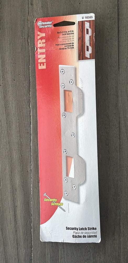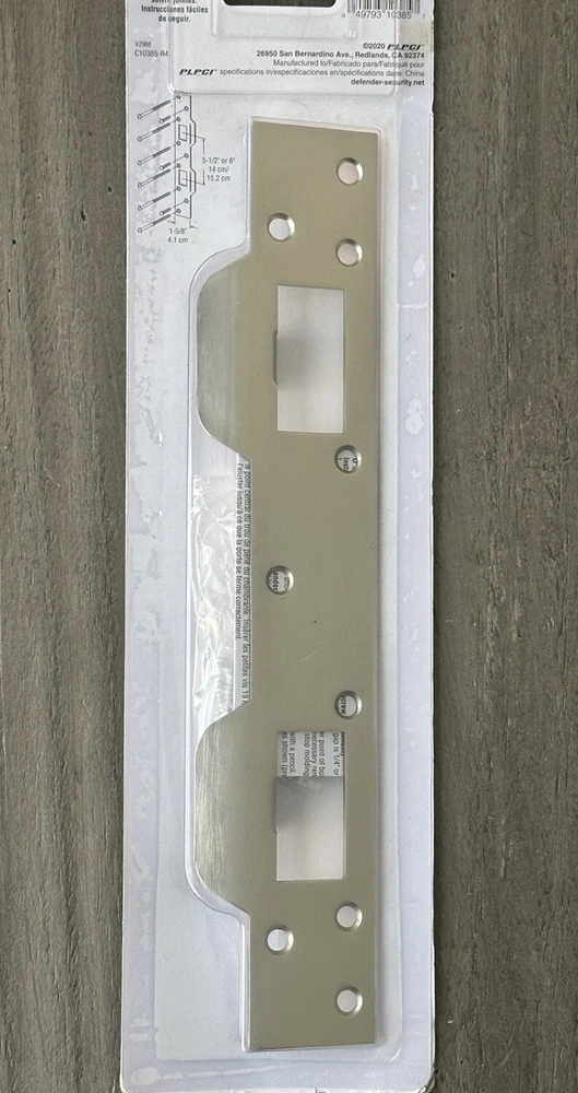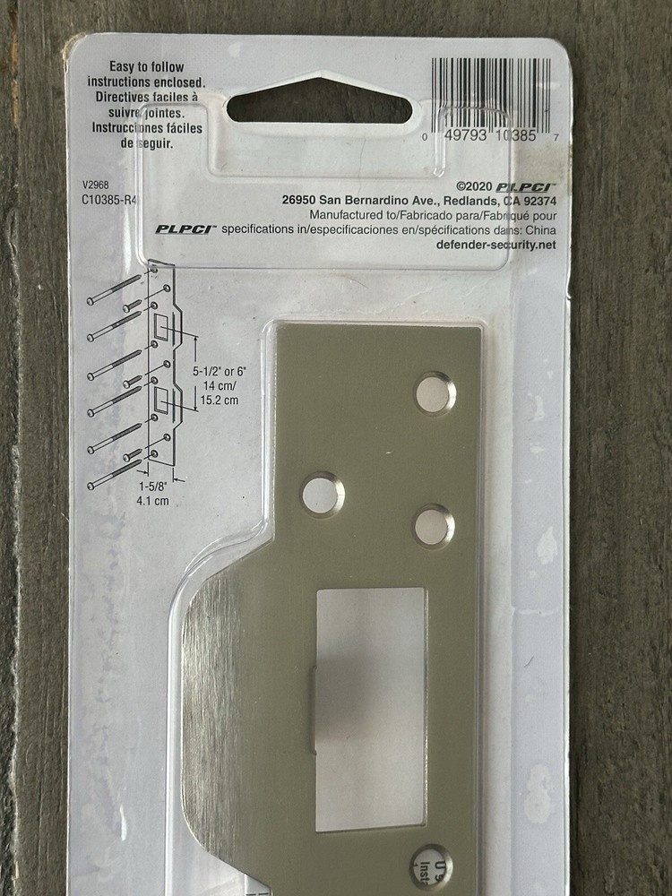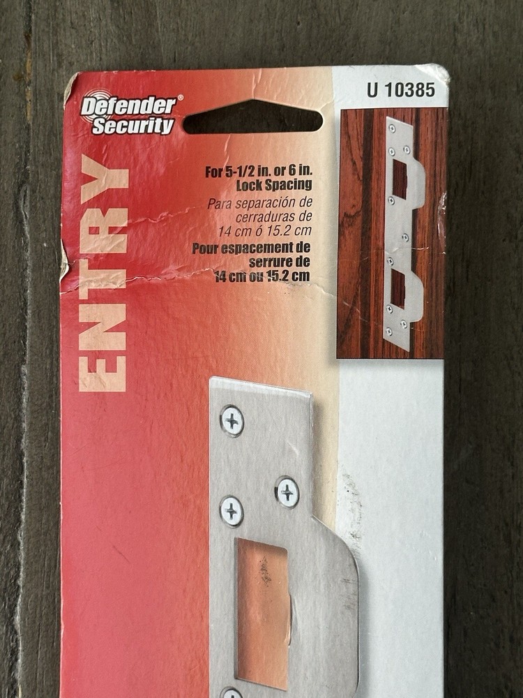 Defender Security Door Latch Strike 5-1/2in - 6in Hole Centers, Steel, Satin Nickel. Product Details: 1. Defender Sec Dr Srk, Accommodates 5-1/2in - 6in Hole Centers, Stl, Satin Nkl 2. Used To Replace Standard Separate Latch and Deadbolt Strikes with One Piece Security 3. Ideal For Use Where High Security Is Desired 4. For Hinged Doors with Deadbolt and Handle Set On 5-1/2 In. To 6 In. Hole Centers 5. Satin Nickel-Plated Finish to Match Existing Door Hardware 6. Installs With Six 3 In. Screws And Three 3/4 In. Screws For Maximum Strength And Protection 7. Replaces Most Standard Latch and Deadbolt Strikes With 1 Piece Security 8. Mounting Hardware Included * Important Notes (Please Read): 1. This is a new, never used item in original packaging. The packaging shows shelf wear from storage. 2. Pictures of the actual item are attached. Prior to purchase please do see all actual pictures, what you see is what you will exactly receive. 3. Shipping is only available in the Continental United States (lower 48 States). We do not ship to PO Box, Freight Forwarder Locations and Third-Party Warehouse Locations. 4. If you have any questions, please feel free to contact me prior to purchase. JL24 L57/58