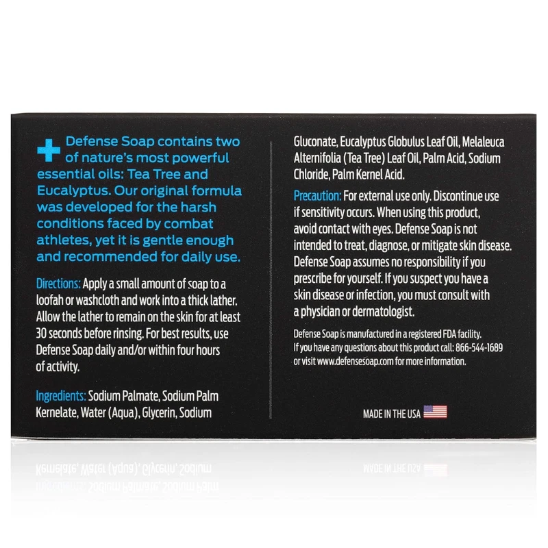 Defense Soap - Natural Tea Tree & Eucalyptus Oil Defense Soap - 100% Natural Tea Tree & Eucalyptus Oil Scent: Classic Age Range: Adult Product Features Clinically Proven Ingredients: Infused with natural tea tree and eucalyptus oil for deep cleansing and skin protection. Perfect for Athletes: Effectively removes dirt, grime, gym crud, sweat, and allergens. Premium Quality Wash: Restores the skin’s natural barrier while controlling excess oil and dead skin cells. Hypoallergenic & Safe: Gentle eucalyptus scent suitable for sensitive skin, triple-milled for consistency and longevity. All-Natural Formula: Free from fragrances, dyes, petrochemicals, triclosan, alcohol, and sodium lauryl sulfate. Technical Specifications Feature Details Item Weight 4 Ounces Dimensions (L x W x H) 3.75 x 1.5 x 2.25 inches Scent Classic Age Range Adult Product Images Return Policy This item can be returned in its original condition for a full refund or replacement within 30 days of receipt. Visit Quick Pick for more amazing deals!