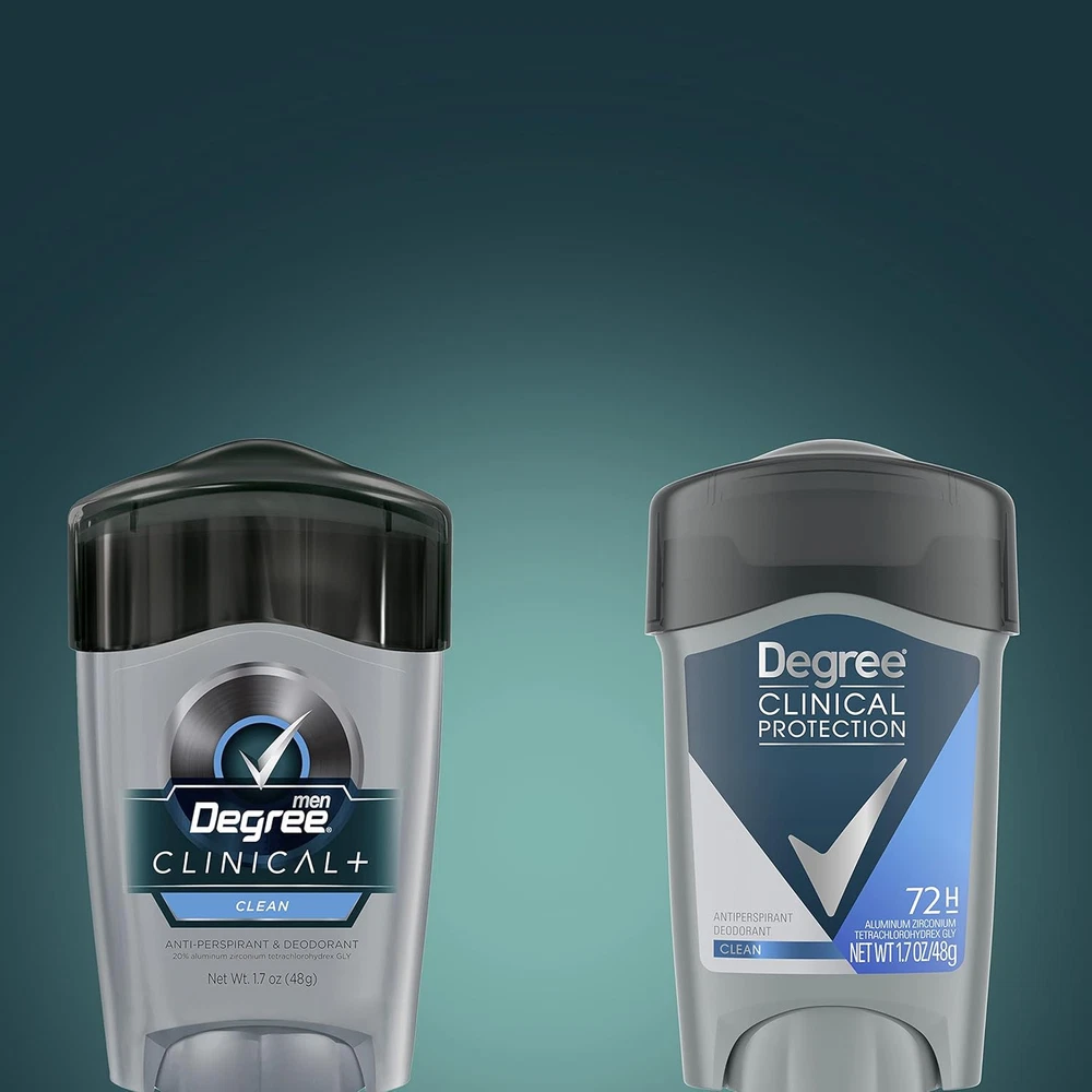 Product Description Degree Men, Clinical Protection, Antiperspirant Deodorant, Soft Solid, Clean, 1.7 Ounce (Pack Of 6) Degree Clinical Protection Long Lasting Antiperspirant Deodorant Stick, Clean, Degree Men Clinical Protection Clean Antiperspirant Deodorant delivers prescription-strength wetness protection with 72-hour sweat and odor control to keep you feeling dry and fresh. Our breakthrough motionsense technology works in sync with your body, all day long. This Antiperspirant deodorant releases a clean, masculine scent every time you move. The powerful, prescription-strength Antiperspirant deodorant responds when you need it most, so you can stay confident without having to worry about slowing down. PRESCRIPTION-STRENGTH PROTECTION: Active lives need Degree Men Clinical Protection Clean Antiperspirant Deodorant. This Antiperspirant for men delivers prescription-strength wetness protection MOTIONSENSE® TECHNOLOGY: Our breakthrough MotionSense® technology works in sync with your body all day long. This deodorant for men releases a subtle burst of fragrance every time you move READY FOR WHAT'S NEXT: Take on the day with Degree Men Clinical Protection Clean Antiperspirant Deodorant stick. Simply twist, glide, and move UNSTOPPABLE FRESHNESS: Stay fresh, longer with this Antiperspirant. Degree Men Clinical Protection Clean Antiperspirant Deodorant features a clean, masculine scent to keep you feeling energized RECYCLE WITH DEGREE: As well as increasing our use of reusable materials, we're making it easier for you to recycle our Antiperspirant and dry spray packaging Clean Clinical Antiperspirant Deodorant: Provides 24-hour protection against sweat and odor Neutral Scent: Unisex fragrance won't overpower you or your partner Ingredients Active ingredient: Aluminum Zirconium Tetrachlorohydrex GLY (20%); Inactive ingredients: Cyclopentasiloxane, dimethicone, paraffin, microcrystalline wax, fragrance (parfum), silica, caprylic/capric triglyceride, sodium starch octenylsuccinate, dimethicone crosspolymer, hydrated silica, maltodextrin, gelatin crosspolymer, hydrolyzed corn starch octenylsuccinate, cellulose gum, and BHT