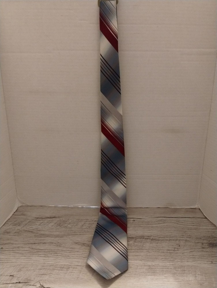 This Del Cino tie combines a refined palette of red and silver tones with a striped pattern, offering a professional yet stylish addition to formal attire. • 54 inches in length • Striped pattern with gradient effect • Lightweight and smooth material • Versatile for business or formal settings Size: 54
