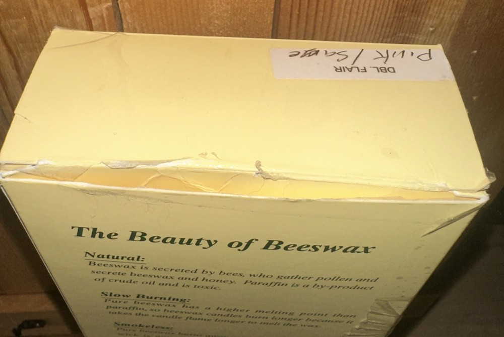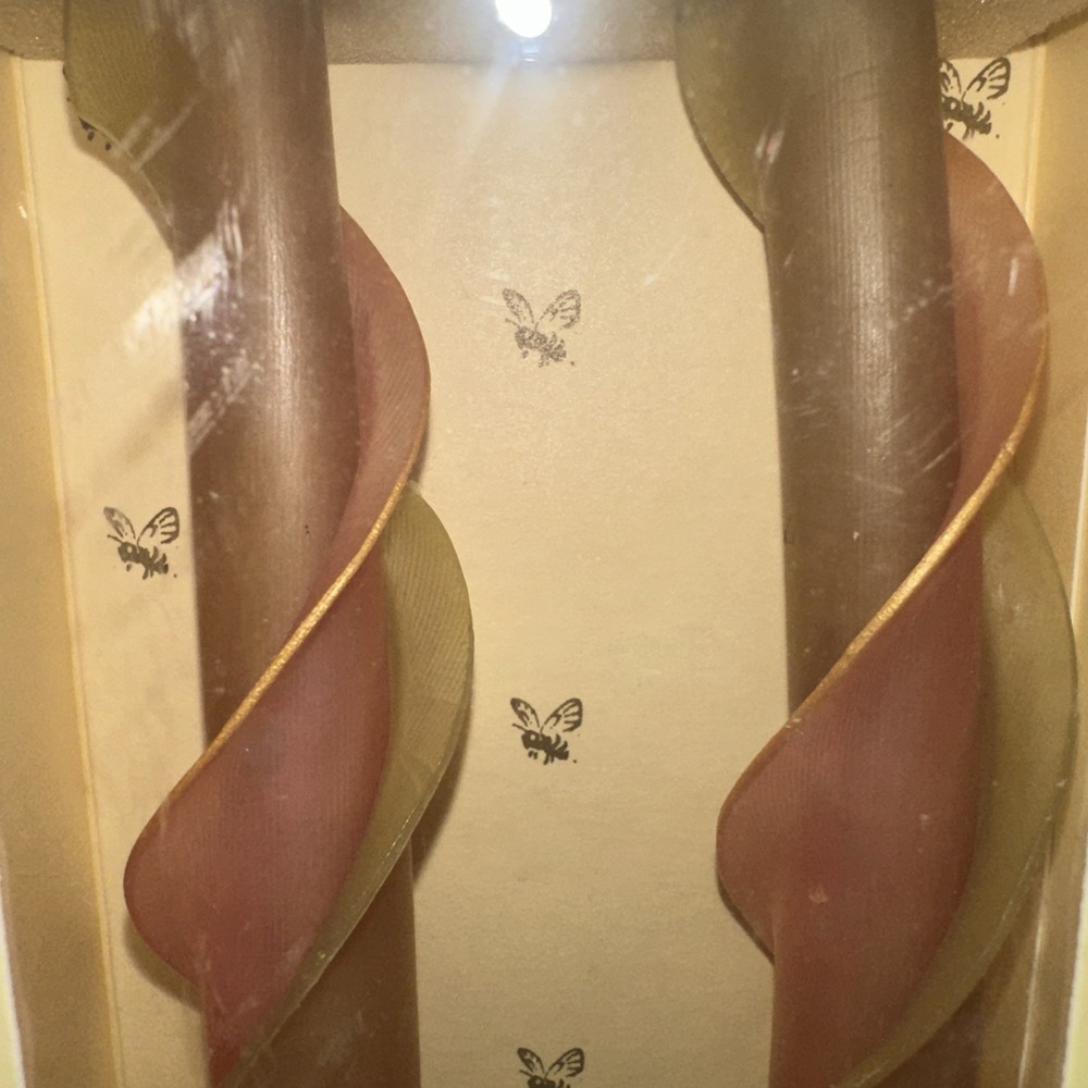 Del Mar Knorr Beeswax Tall 12" Spiral Tapered Candlesticks Set Soft Pink & Green New open box Box has some wearing from being in storage no damage to candles. Please see pictures Thank you for looking :) Bin Z