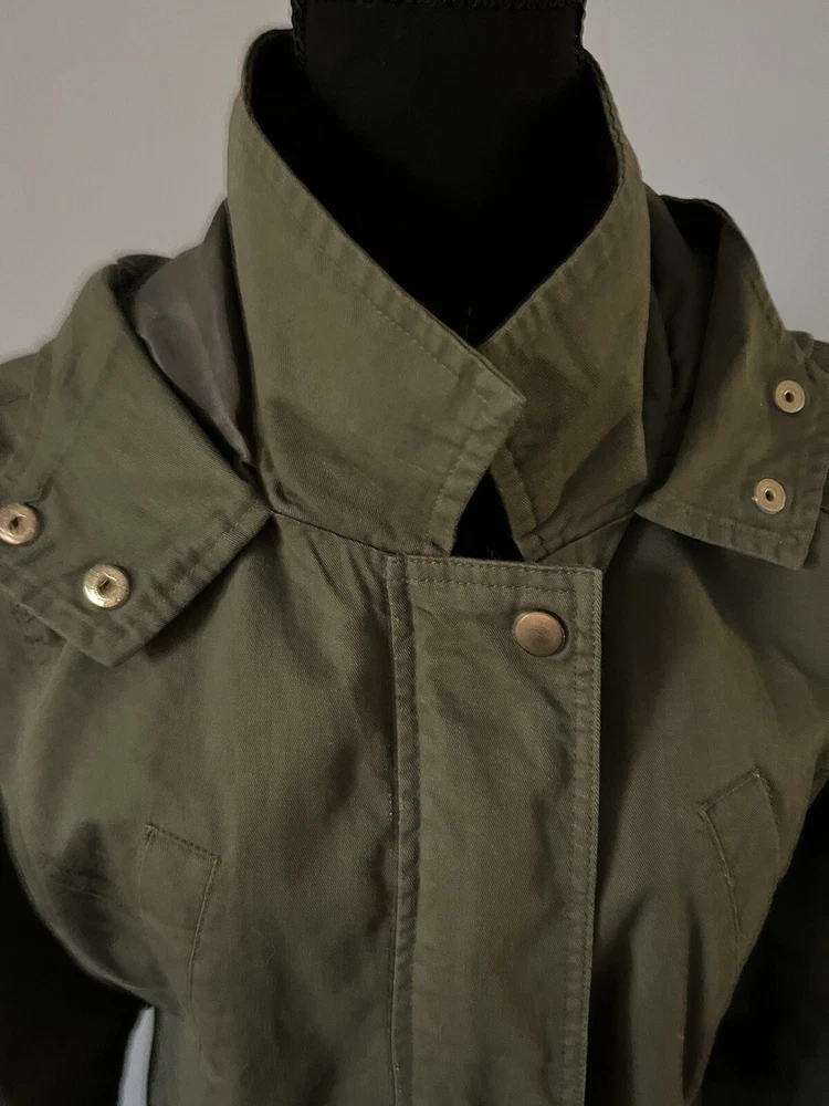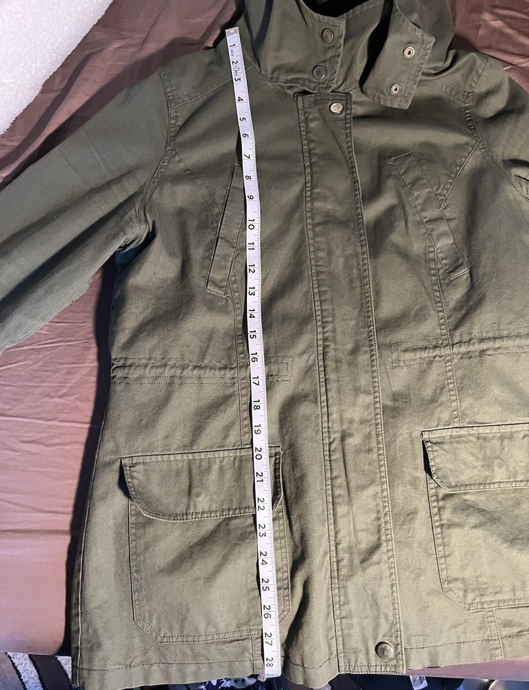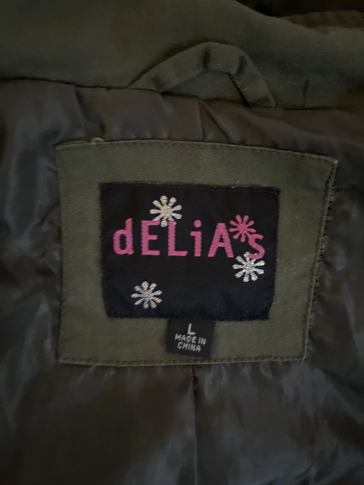 Delia*s Y2K Style jacket womens Army green Size L utility button down With Hood