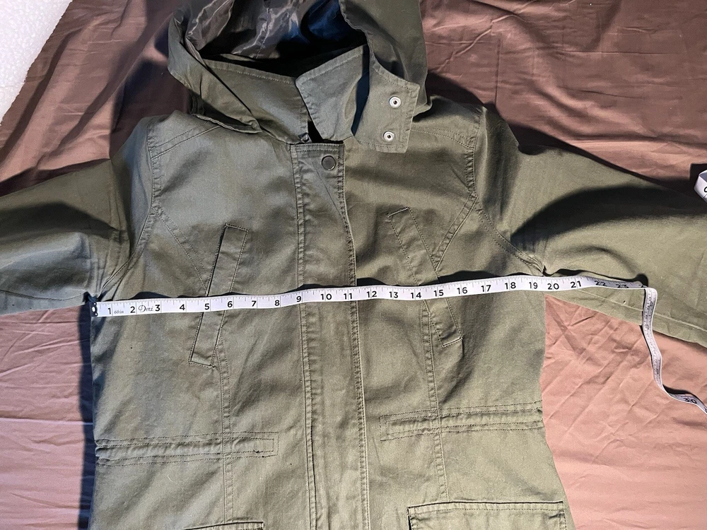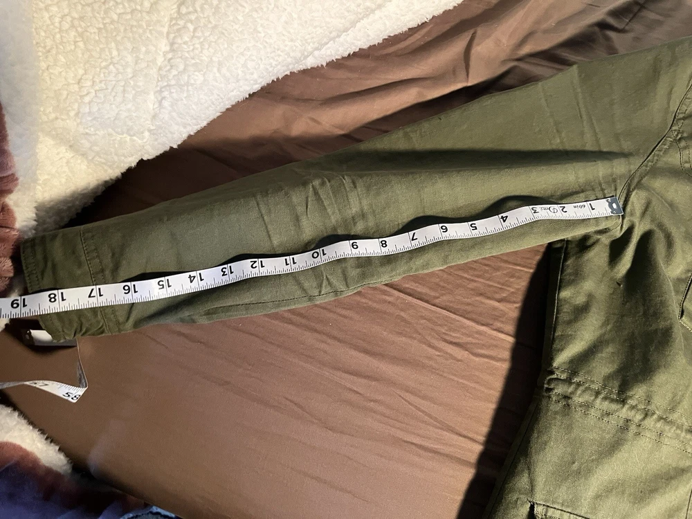 In excellent pre-owned condition, like new only worn a handful of times The two large pockets on the front are functional The two smaller breast pockets are faux Please see photos for measurments