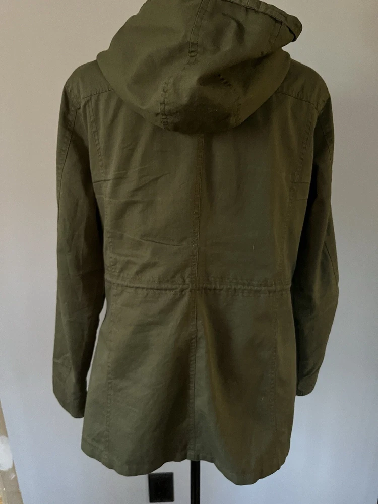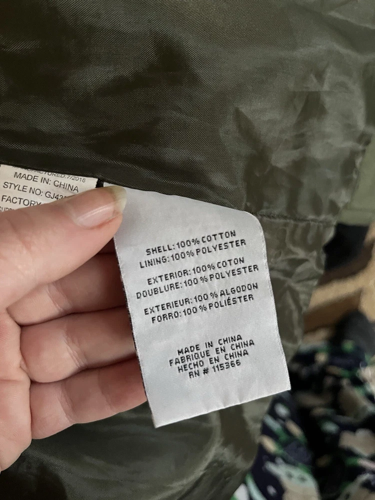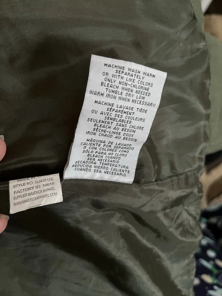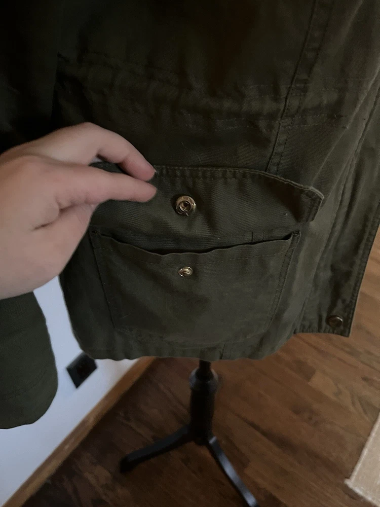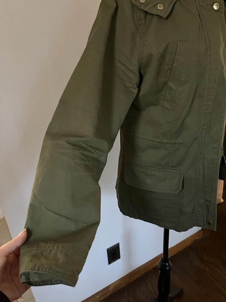 Occasion: Casual, Travel Sleeve Length: Long Sleeve Country/Region of Manufacture: China Features: Pocket Color: Green Fabric Type: Canvas Department: Women Garment Care: Machine Washable Lining Material: Polyester Jacket/Coat Length: Mid-Length Accents: Zipper, Button Brand: dELiA*s Size: L Type: Jacket Closure: Button Style: Military Jacket Theme: Army, Outdoor, 90s Outer Shell Material: Cotton Size Type: Regular Season: Fall, Spring, Winter Pattern: Solid